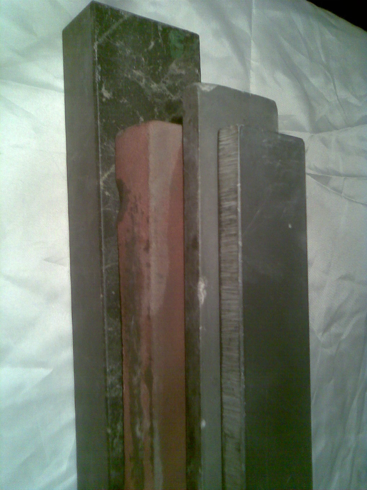 Re: Заточка на камняхЗдравствуйте!!! Два бруска, это сланцы, темно серого цвета, и разной зернистости, третий, искусственный абразив темно кирпичного цвета(примерно 1000 грит. Ориентируюсь по субъективным ощущениям). Четвертый, тот самый черно зеленый, с темно зелеными прожилками. На гранит не похож, хорошо обработан. Если у меня получится, сегодня выложу фотки.
