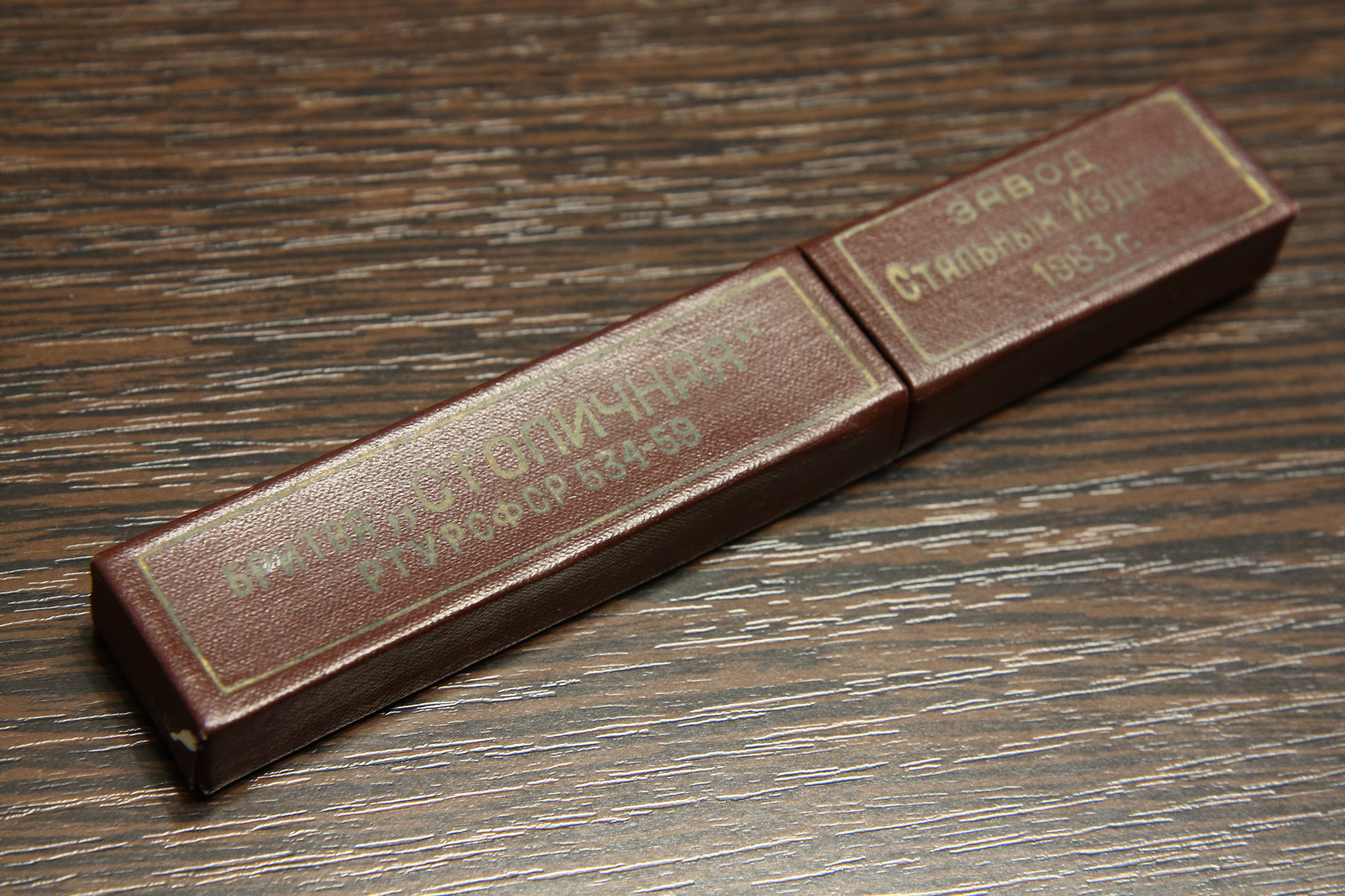 Опасная бритва Столичная, завод СТИЗ, 1964 год. Ширина полотна 17 мм, гравюра на полотне "Столичная" и кремлевская стена, все родное, футляр тоже. Пришла с заводской заточкой. Почистил вручную пастами и заточил, подготовлена мной к бритью. Геометрия не идеал, но заточку я вывел полностью, в последующем затачиваться и правиться будет без проблем. Столичная пришла на смену Москве, выпускалась в 60е годы, хромистая сталь. Цена - руб.