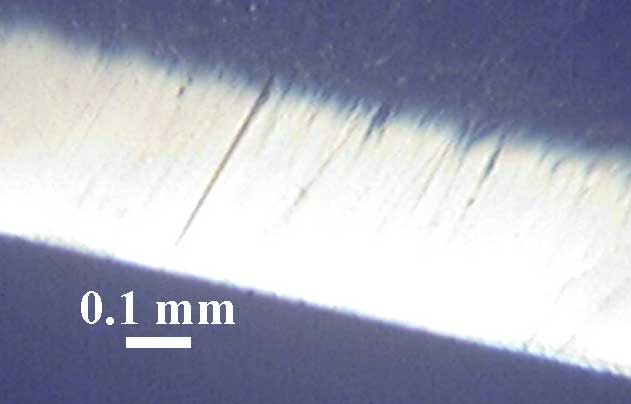 Макроснимки от КаяСнимок при увеличении 150Х. При наклоне лезвия примерно в 30град. Бритва WOSTENHOLM&SON. Финальная заточка на арканзасе транслюсент + ремни. (Фото увеличиваются)