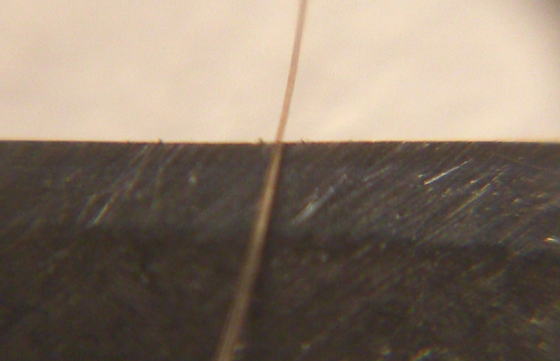 Попробую снять волос, как сказал Александр, своим мегаручным и архидедовским способом - при помощи самой обычной цифромыльницы и пары луп. Интересно кто круче? Итак, экспериментируем.