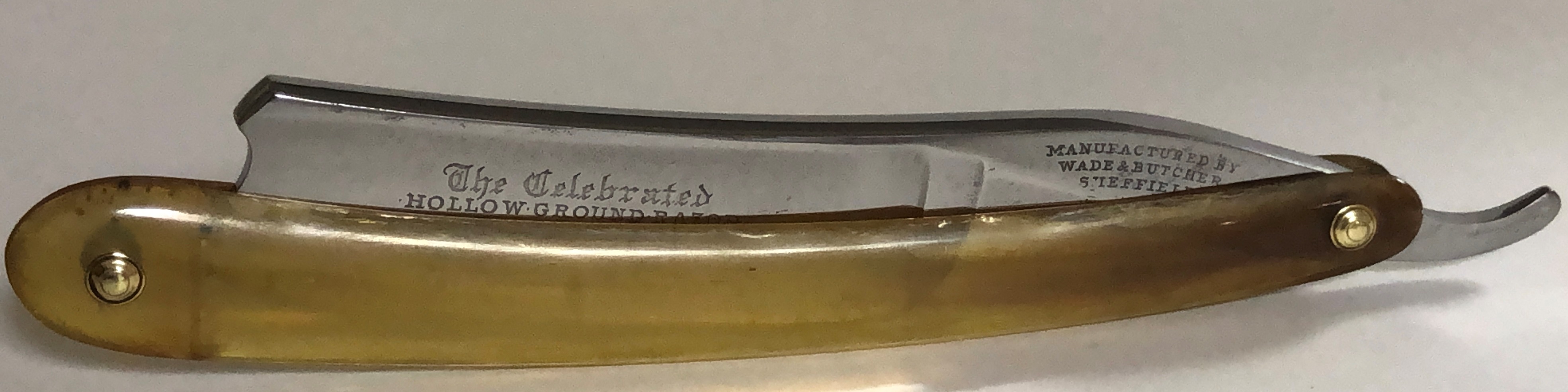Итак, первый"Мясник" на ваш суд.. WADE&BUTCHER-знаменитый THE SELEBRATED HOLLOY GROUND RAZOR Ширина полотна-23мм или 7/8 Толщина обушка-7 мм Форма лезвия-1/2 клин Углеродистая сталь. Бритва изготовлена до 1891 года, наверно ближе к середине века. Информации по этому легендарному бренду достаточно много, так что можно самостоятельно все найти. Бритва в прекрасном состоянии для своих преклонных лет.Разобрал.Клинок имеет оригинальную ширину.Так как полотно изначально не требовало каких то радикальных работ , в виде регринда и большого снятия металла, то я лишь немного освежил клинок тонким абразивом и все, оставив немного патины, для красоты.Немного больше патины оставил в районе эрля.(все таки не дают мне покоя японские кованые бритвы ручной работы, с коваными и воронеными эрлями). Клинок не имеет рытвин, коррозии или других дефектов металла.Оправа из медового натурального рога, также находится в прекрасном состоянии, без трещин и расслоений.Редкая вещь. Родные пины в комплекте.А куда же без них, чтобы все по фэн шую было?Родная коробочка в удовлетворительном состоянии. Ну тут уж извините.Не каждый картон способен дожить более 150 лет... Тяжелая, брутальная и редкая англичанка будет до конца заточена и доведена до комфортного бритья. Цена-28500 р с доставкой ПРОДАН Spoiler Show
