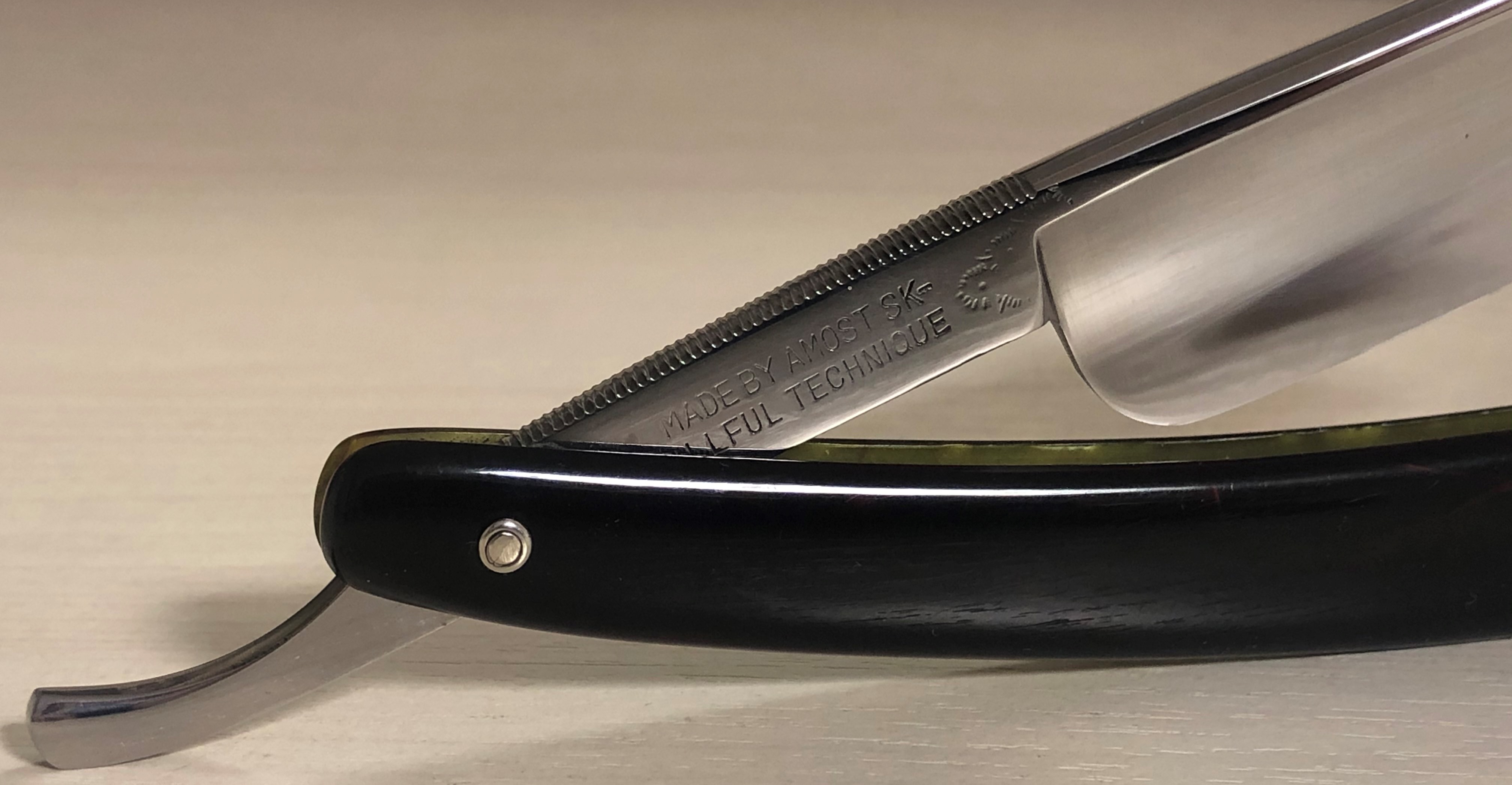 JOSE MONSERRAT POU Ширина полотна-20 мм Толщина обушка-6 мм Полная вогнутость. Углеродистая сталь. Середина 20-го века. Бритва в очень хорошем и совершенно не уточенном состоянии.Разобрал, почистил клинок от патины и снова собрал. Равномерную ,благородную патину специально оставил на эрле, для красоты.Металл бритвы не имеет видимых и критичных дефектов.Идеальная геометрия полотна. Бритва имеет прекрасную и "звонкую" сталь, способную выдавать чистое и мягкое бритье. Очень хороша в качестве стартовой для новичка, но и не только.Бритва относительно недорогая, так что не пропустите. Заточена и готова к брить. Цена-6500 р с доставкой[/b][/QUOTE] ПРОДАН Внимание! Важная информация! Spoiler Show