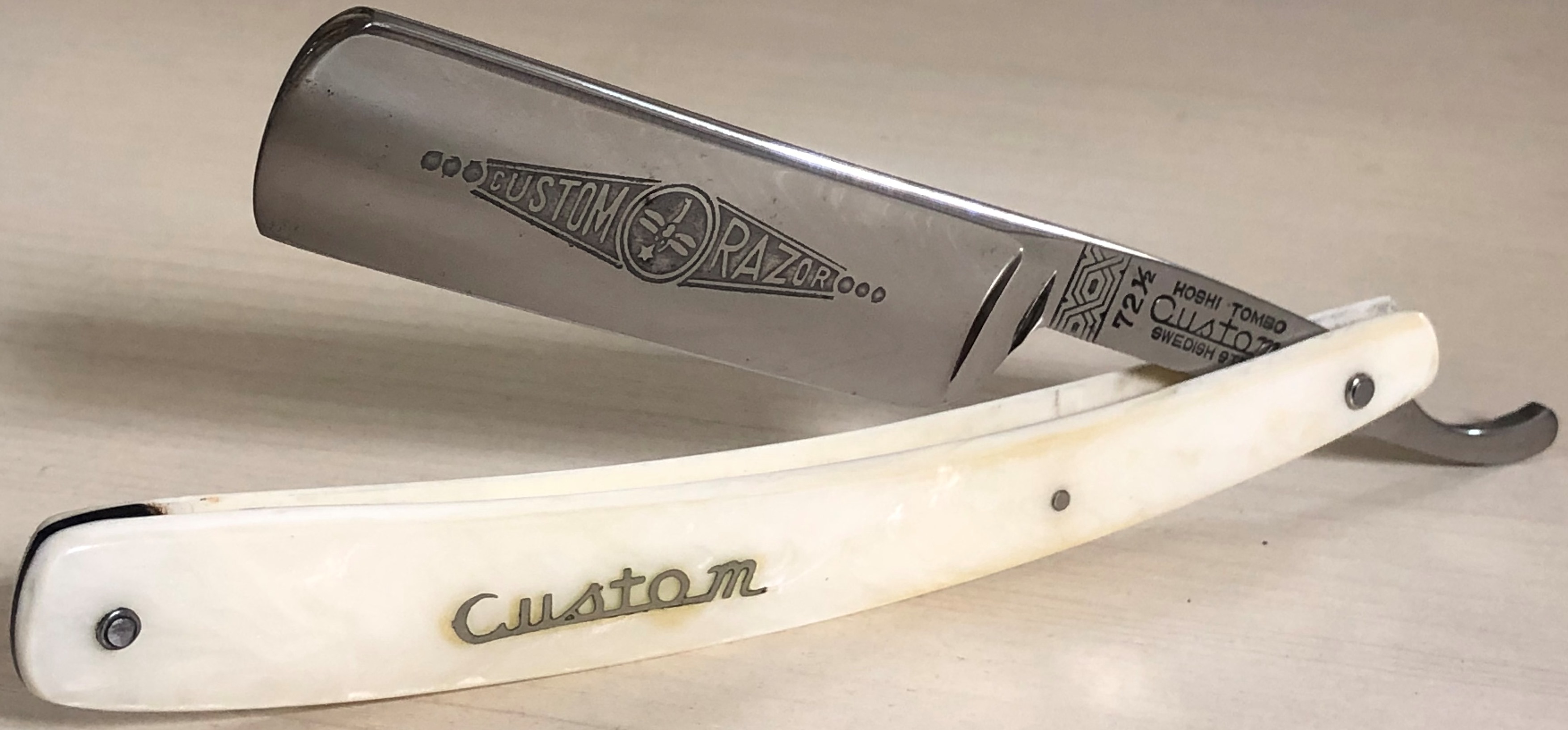 JOSE MONSERRAT POU Ширина полотна-20 мм Толщина обушка-6 мм Полная вогнутость. Углеродистая сталь. Середина 20-го века. Бритва в очень хорошем и совершенно не уточенном состоянии.Разобрал, почистил клинок от патины и снова собрал. Равномерную ,благородную патину специально оставил на эрле, для красоты.Металл бритвы не имеет видимых и критичных дефектов.Идеальная геометрия полотна. Бритва имеет прекрасную и "звонкую" сталь, способную выдавать чистое и мягкое бритье. Очень хороша в качестве стартовой для новичка, но и не только.Бритва относительно недорогая, так что не пропустите. Заточена и готова к брить. Цена-6500 р с доставкой[/b][/QUOTE] ПРОДАН Внимание! Важная информация! Spoiler Show