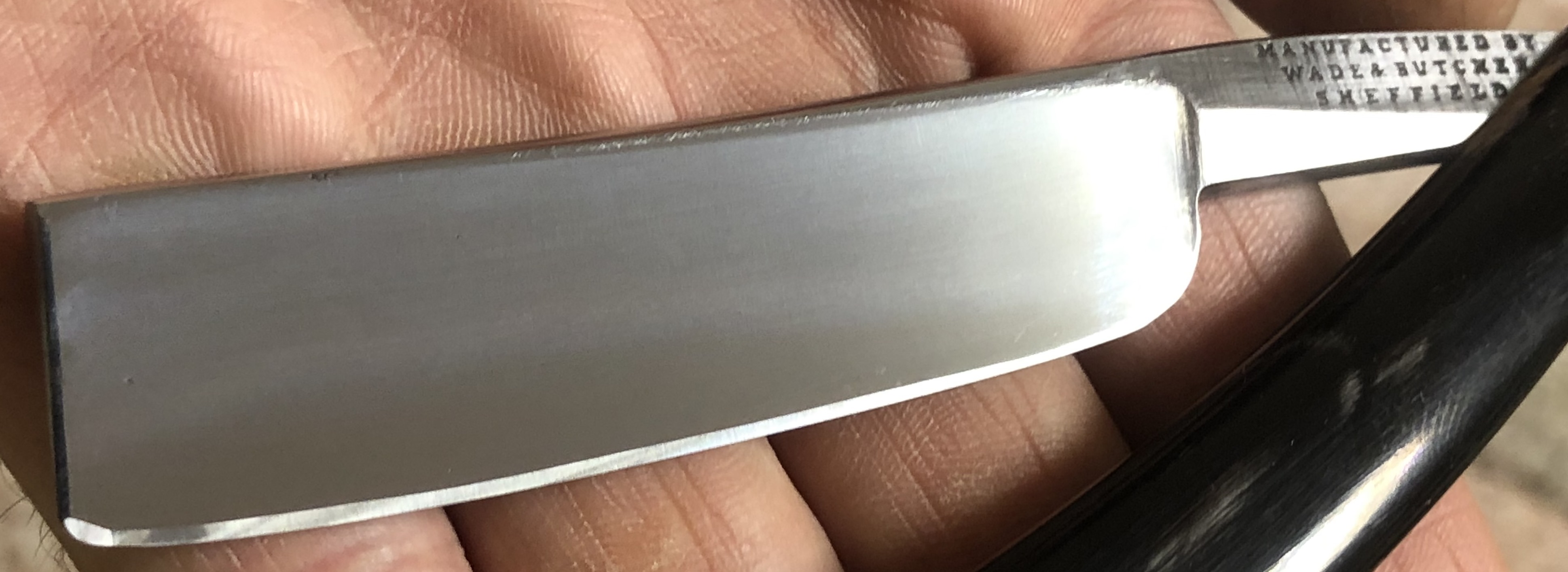 Итак, первый"Мясник" на ваш суд.. WADE&BUTCHER-знаменитый THE SELEBRATED HOLLOY GROUND RAZOR Ширина полотна-23мм или 7/8 Толщина обушка-7 мм Форма лезвия-1/2 клин Углеродистая сталь. Бритва изготовлена до 1891 года, наверно ближе к середине века. Информации по этому легендарному бренду достаточно много, так что можно самостоятельно все найти. Бритва в прекрасном состоянии для своих преклонных лет.Разобрал.Клинок имеет оригинальную ширину.Так как полотно изначально не требовало каких то радикальных работ , в виде регринда и большого снятия металла, то я лишь немного освежил клинок тонким абразивом и все, оставив немного патины, для красоты.Немного больше патины оставил в районе эрля.(все таки не дают мне покоя японские кованые бритвы ручной работы, с коваными и воронеными эрлями). Клинок не имеет рытвин, коррозии или других дефектов металла.Оправа из медового натурального рога, также находится в прекрасном состоянии, без трещин и расслоений.Редкая вещь. Родные пины в комплекте.А куда же без них, чтобы все по фэн шую было?Родная коробочка в удовлетворительном состоянии. Ну тут уж извините.Не каждый картон способен дожить более 150 лет... Тяжелая, брутальная и редкая англичанка будет до конца заточена и доведена до комфортного бритья. Цена-28500 р с доставкой ПРОДАН Spoiler Show