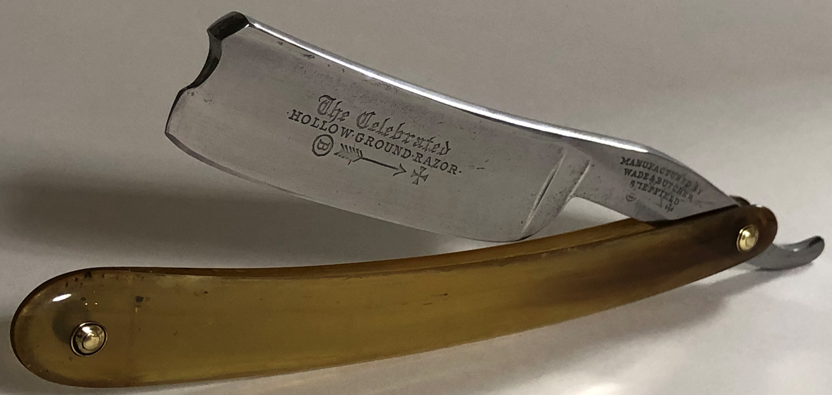 Итак, первый"Мясник" на ваш суд.. WADE&BUTCHER-знаменитый THE SELEBRATED HOLLOY GROUND RAZOR Ширина полотна-23мм или 7/8 Толщина обушка-7 мм Форма лезвия-1/2 клин Углеродистая сталь. Бритва изготовлена до 1891 года, наверно ближе к середине века. Информации по этому легендарному бренду достаточно много, так что можно самостоятельно все найти. Бритва в прекрасном состоянии для своих преклонных лет.Разобрал.Клинок имеет оригинальную ширину.Так как полотно изначально не требовало каких то радикальных работ , в виде регринда и большого снятия металла, то я лишь немного освежил клинок тонким абразивом и все, оставив немного патины, для красоты.Немного больше патины оставил в районе эрля.(все таки не дают мне покоя японские кованые бритвы ручной работы, с коваными и воронеными эрлями). Клинок не имеет рытвин, коррозии или других дефектов металла.Оправа из медового натурального рога, также находится в прекрасном состоянии, без трещин и расслоений.Редкая вещь. Родные пины в комплекте.А куда же без них, чтобы все по фэн шую было?Родная коробочка в удовлетворительном состоянии. Ну тут уж извините.Не каждый картон способен дожить более 150 лет... Тяжелая, брутальная и редкая англичанка будет до конца заточена и доведена до комфортного бритья. Цена-28500 р с доставкой ПРОДАН Spoiler Show