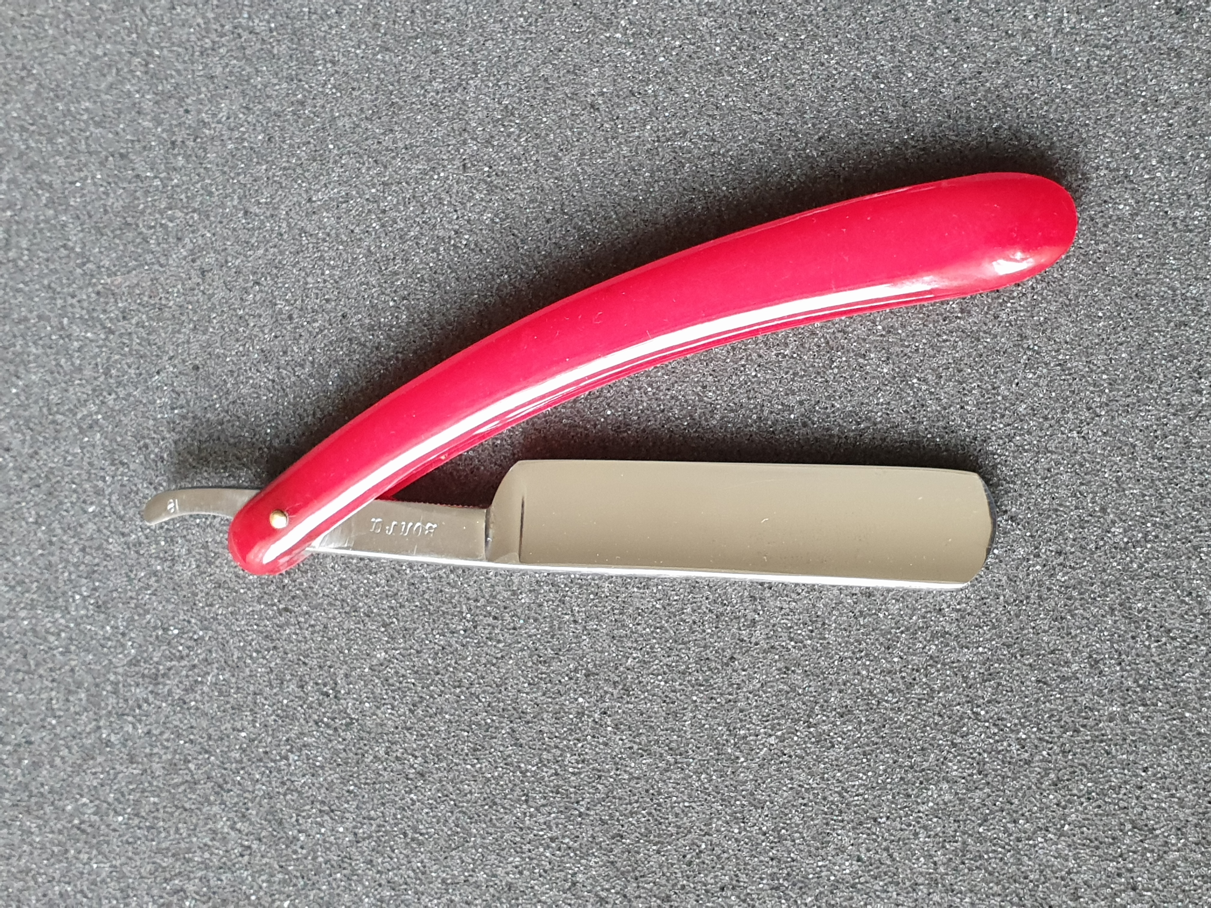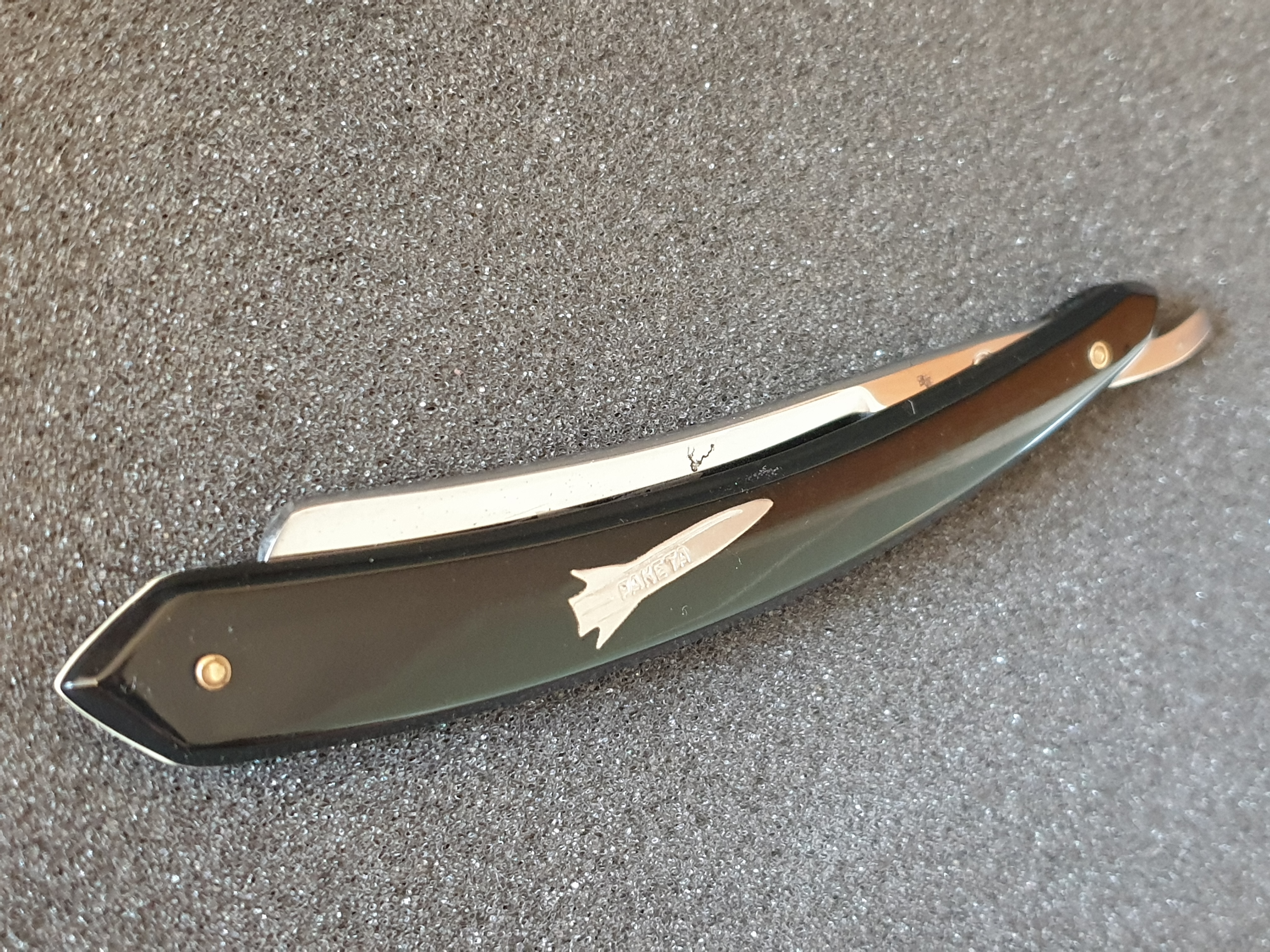 Продаётся от S&T85. Joseph Rodgers&sons, Шеффилд, поставщик королевского двора, XIX век. Ширина клинка 18мм, ручка - рог, клинышек - олово. Все родное, бритва не разбиралась и не восстанавливалась, оригинальный гринд клинка. Сделана свежая заточка на японских камнях, финиш на Озуку. Ручка не идеально ровная, но парковке клинка не мешает.