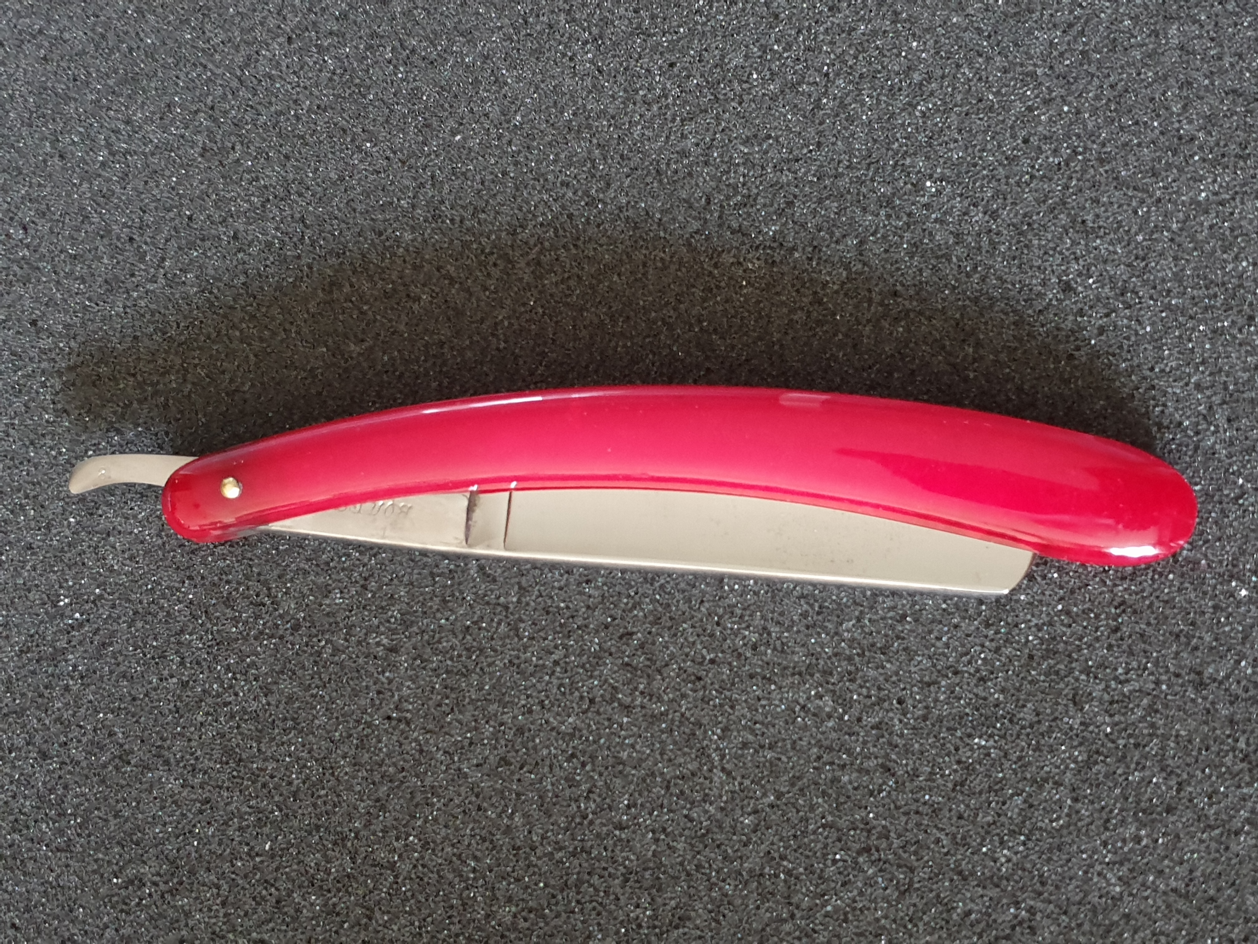 viewtopic.php?t=267&start=500 Размер 5/8, ручка из целлулоида с металлическими декоративными накладками. Все родное, бритва не разбиралась и не восстанавливалась, заводской гринд клинка. Сделана только свежая заточка на японских камнях, в комплекте родной футляр. Цена ПРОДАНО Spoiler Show
