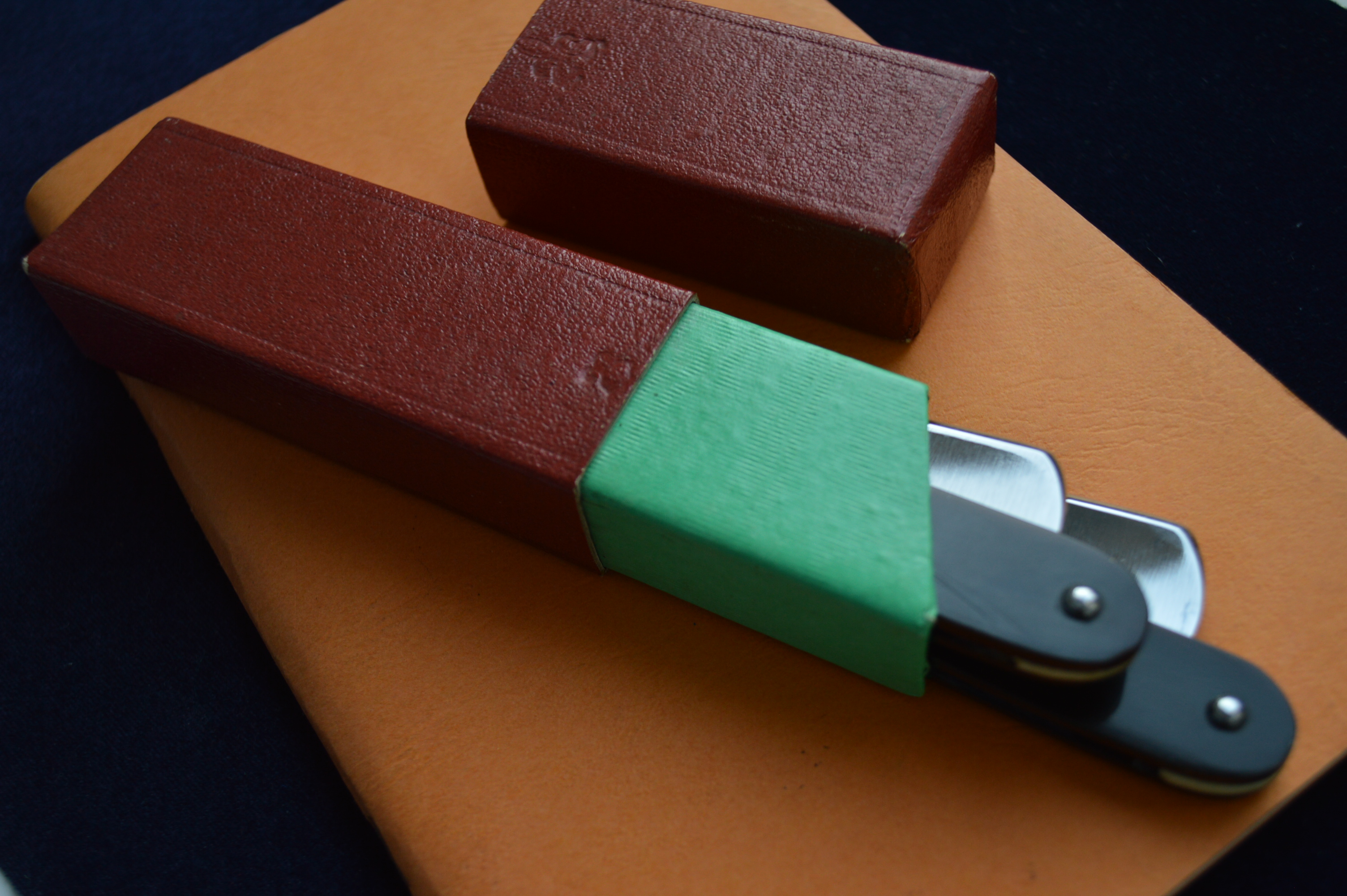 Бритвы не разбирались и чистились без применения наждачных бумаг, есть потемнения, но без надобности что-то вычищать грубыми абразивами, бритвы чистились очень деликатно, клинышек кость, ручка рог пропитана специальным средством, стальные крупные пины в замечательном сохране, все это в нетронутом состоянии добавляет шарма и дает понимание того, что в руках действительно антикварная вещь.