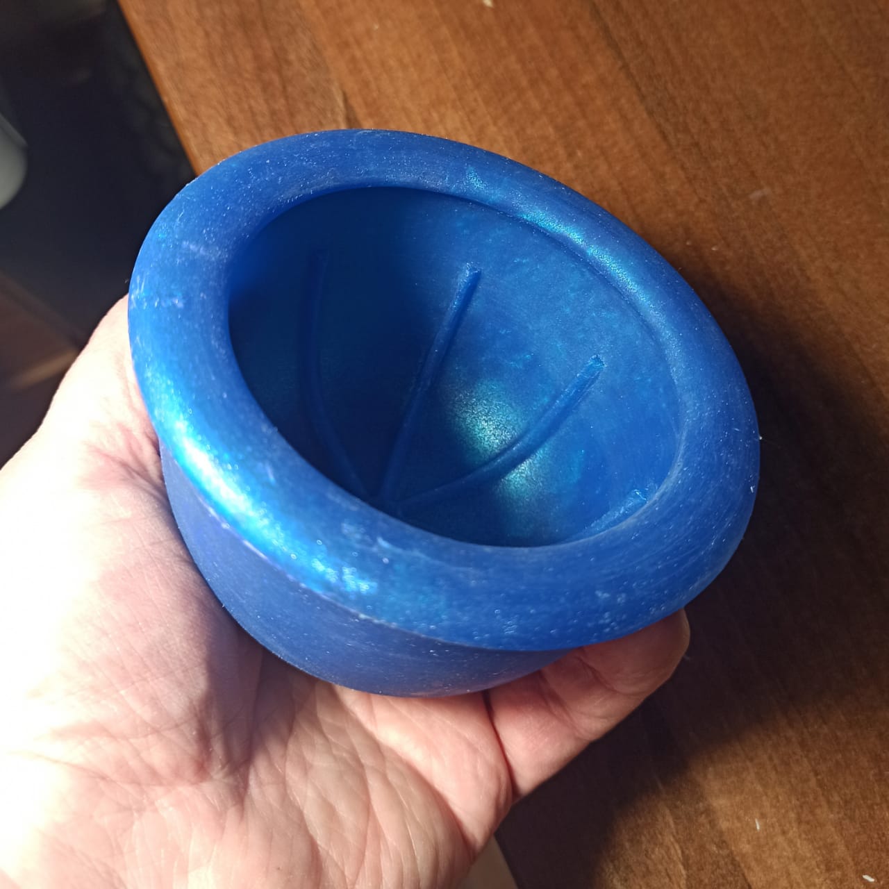 Продаётся от ИИКА.Силиконовый скаттл и чашки для бритьяНачинаю производить чашки для бритья. Аналогов не производит никто. Начинаю с самой "маленькой" диаметр 9,5 см, глубина 6,5 см. Развитый отбойник пены, целых 7 мм внутрь чашки!, пену можно бить и на стенках и на дне чашки. Не скользит на столе, раковине, в руке, устойчива. Не бьется, бережно относится к Вашему помазку, можно им сколько угодно стучать по краям, края чашки мягкие. В чашке можно кипятить воду, мыть её в пмм. Срок службы не ограничен. Моя гарантия, пока, 5 лет. Силикон пищевой по физическим свойствам(теплопроводность, теплоемкости) близок к керамике, пластику, т.е. медленно прогревается, а потом долго держит тепло. Чашка боится только порезов, не нужно о неё клинок протирать от пены... Цвет этой- синий металлик, новогодний такой цвет получился.. Цена 1500р плюс доставка Сдэк примерно 300р