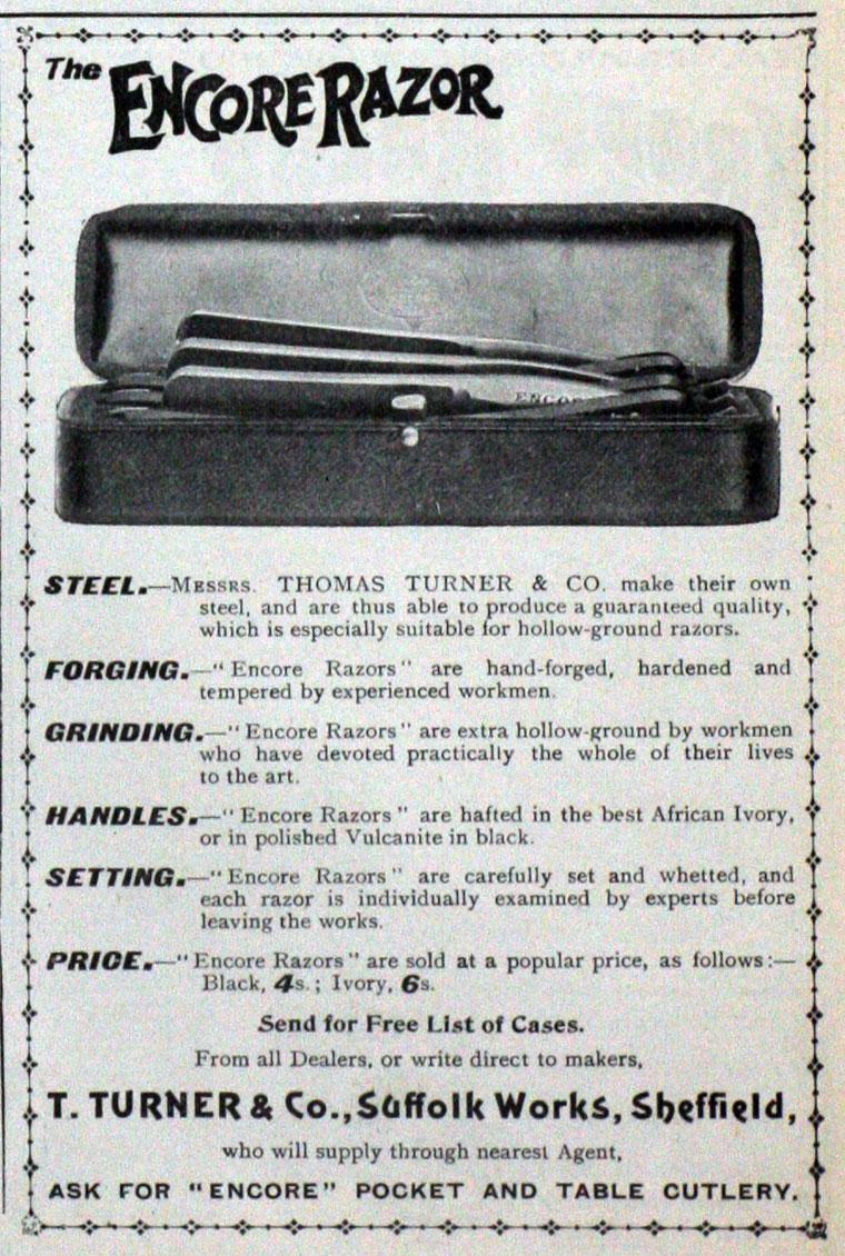 В этой теме назван 1932г... В сети встречается еще такое: THOMAS TURNER & CO Suffolk Works, Sheffield ca. 1834-1921 Turner Thomas & Co. merchants, & table & spring knife, razor, saw, file, edgetool, steel, &c. manufacturers, Suffolk Works, 1 Suffolk road From Whites Directory of Sheffield 1852... И такое: Turner, Thomas & CoLogo Name Thomas Turner & Co Location Suffolk Works, Sheffield Dates of Operation 1802 - 1953 External Links Museums Sheffield[1] Owners Thomas Turner Uploads The firm moved into a factory on Norfolk St. in the 1820's. A new factory, the Suffolk Works, was built in 1834. About 1869, Turner purchased Joseph Haywood, in Sheffield. Знатоки располагают достоверной информацией? Челябинские мужики настолько суровы, что правят бритву не на ремне, а на роже.