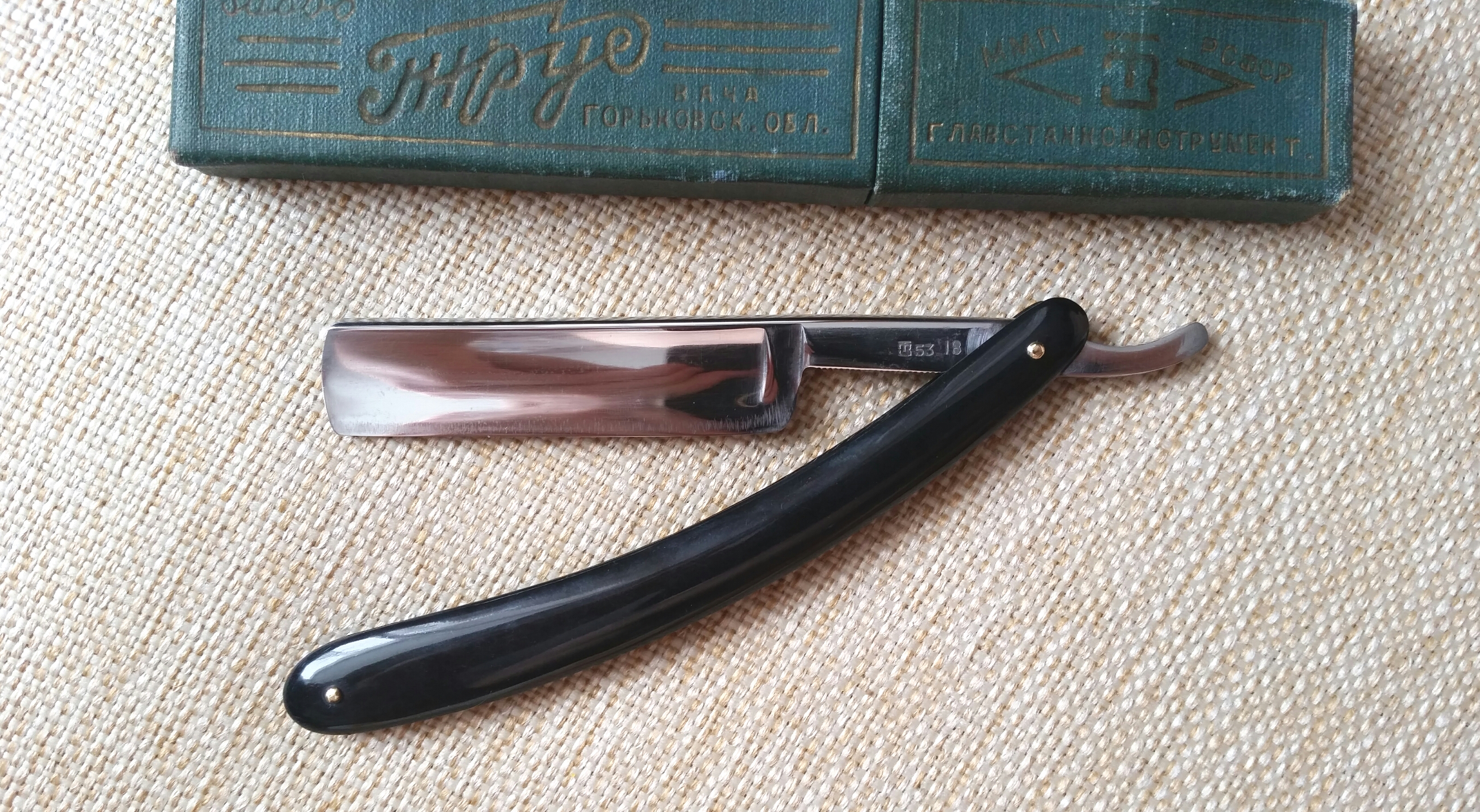 «Яхта» от завода Труд Вача, 1955 год. Непользованная, с родной коробочкой. По сравнению с «Яхтами» 1960-ых, эта более массивная. Сталь великолепная, затачивать одно удовольствие.
