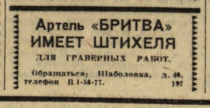 В то время всё хозяйство страны опиралось на артели, в том числе и на артель АРТБРИТВА.
