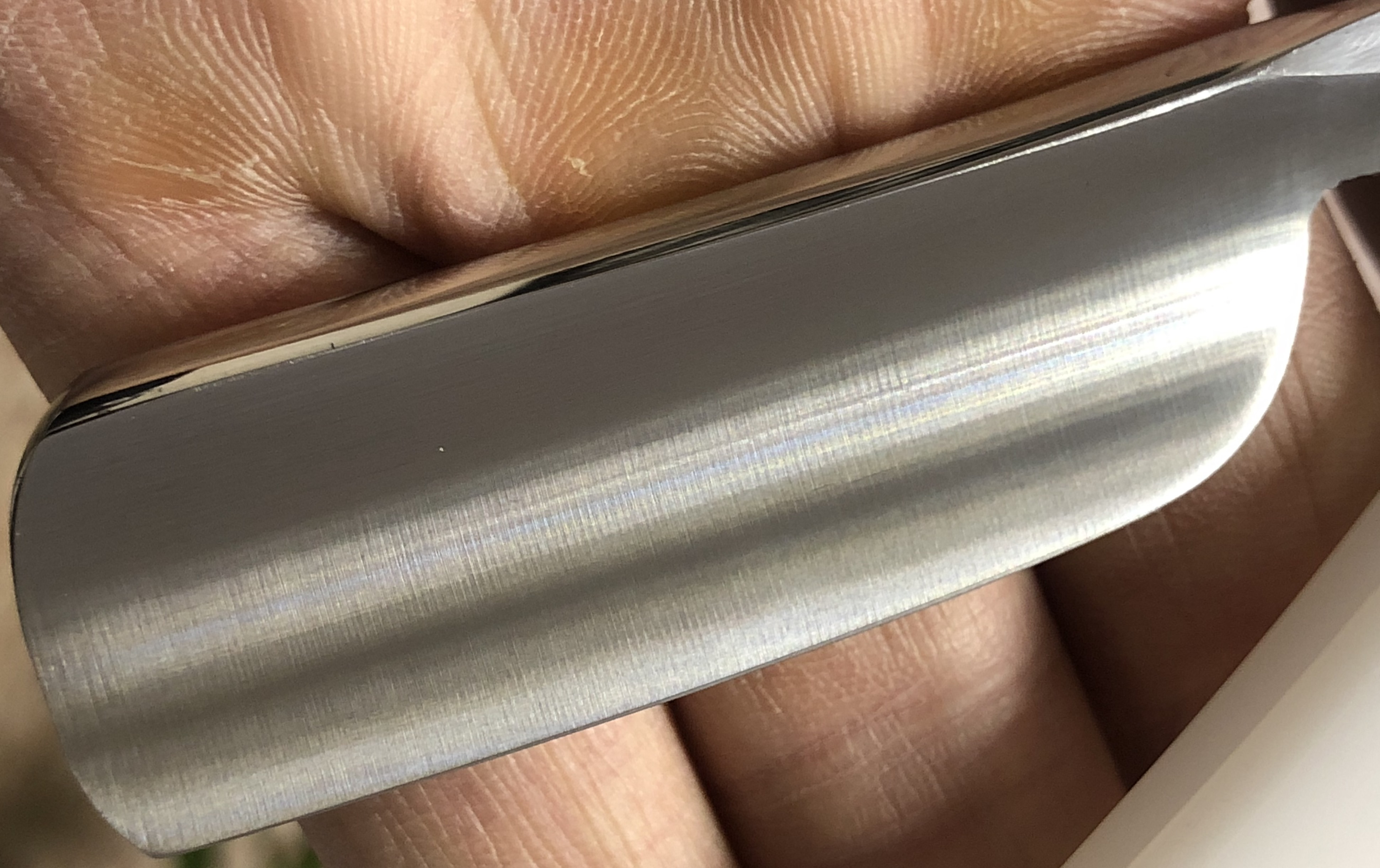Бритва пользованная, но в очень хорошем состоянии.Аккуратное использование.Была разобрана, немного почищена и снова собрана,с сохранением оригинальных пинов.Сталь и кромка чистые, без видимых проблем.Идеальная геометрия клинка:кромочка равномерна по всей длине.