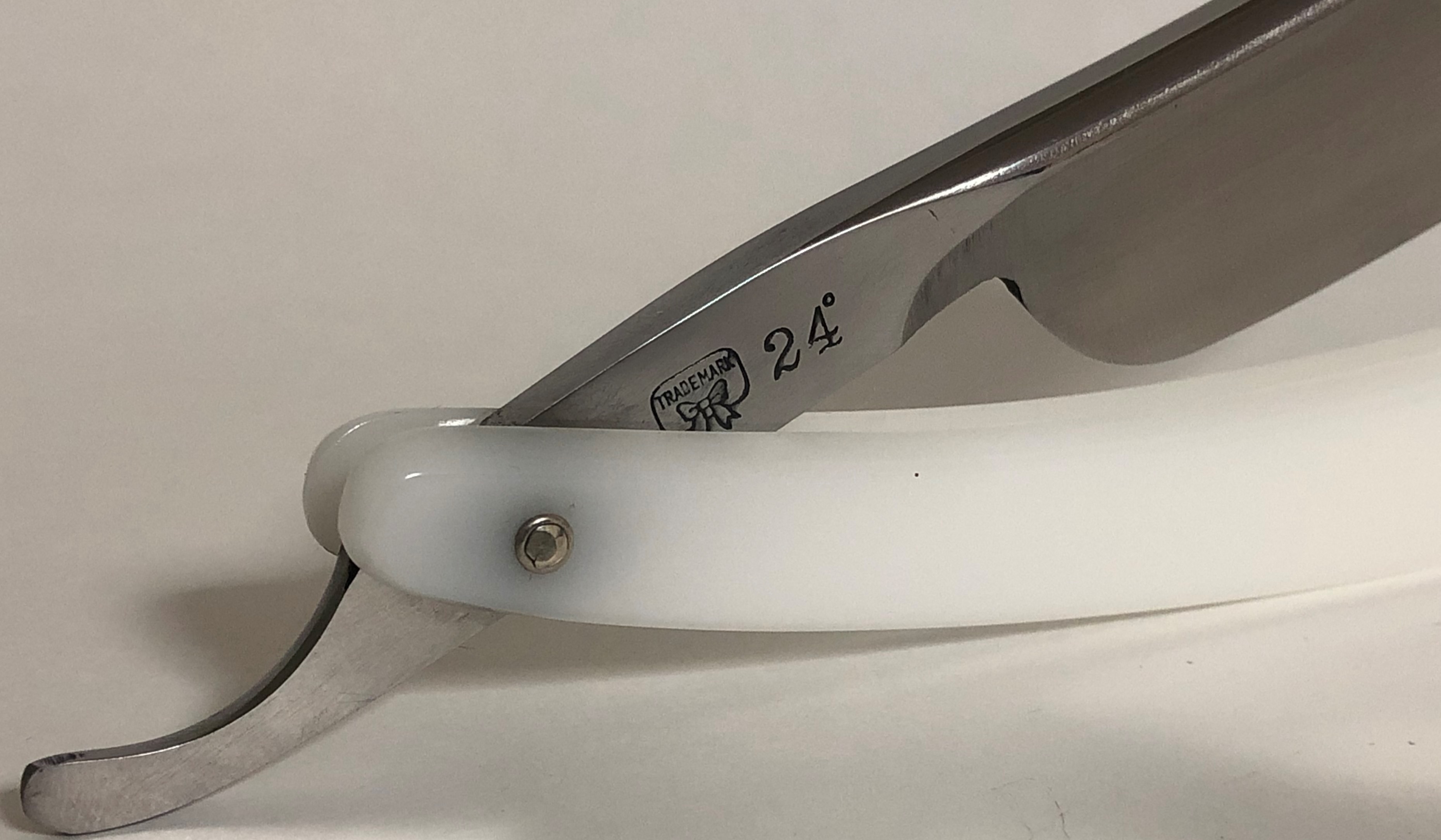 Бритва не разбиралась, а тольно немного чистилось полотно.Какой именно бренд, трудно разобрать, по причине потертости пластиковых накладок, от времени.Можно разобрать только-"Tokyo-Japan" и на обратной стороне-"for barber use-first quality".Исходя из опыта тестирования подобных бритв в прошлом, могу сказать, что бритвы подобного типа имеют отличную"звонкую" сталь, прекрасно точатся и очень удобны в пользовании и уходе, из за своих накладок на эрле.Бритва пользованная, но эксплуатировалась аккуратно.Сталь чистая, без видимых дефектов.Геометрия кромки на уровне. Бритва идеально могла бы подойти для новичка в качестве качественной и совершенно недорогой вещи.Заточена и готова к бритью.