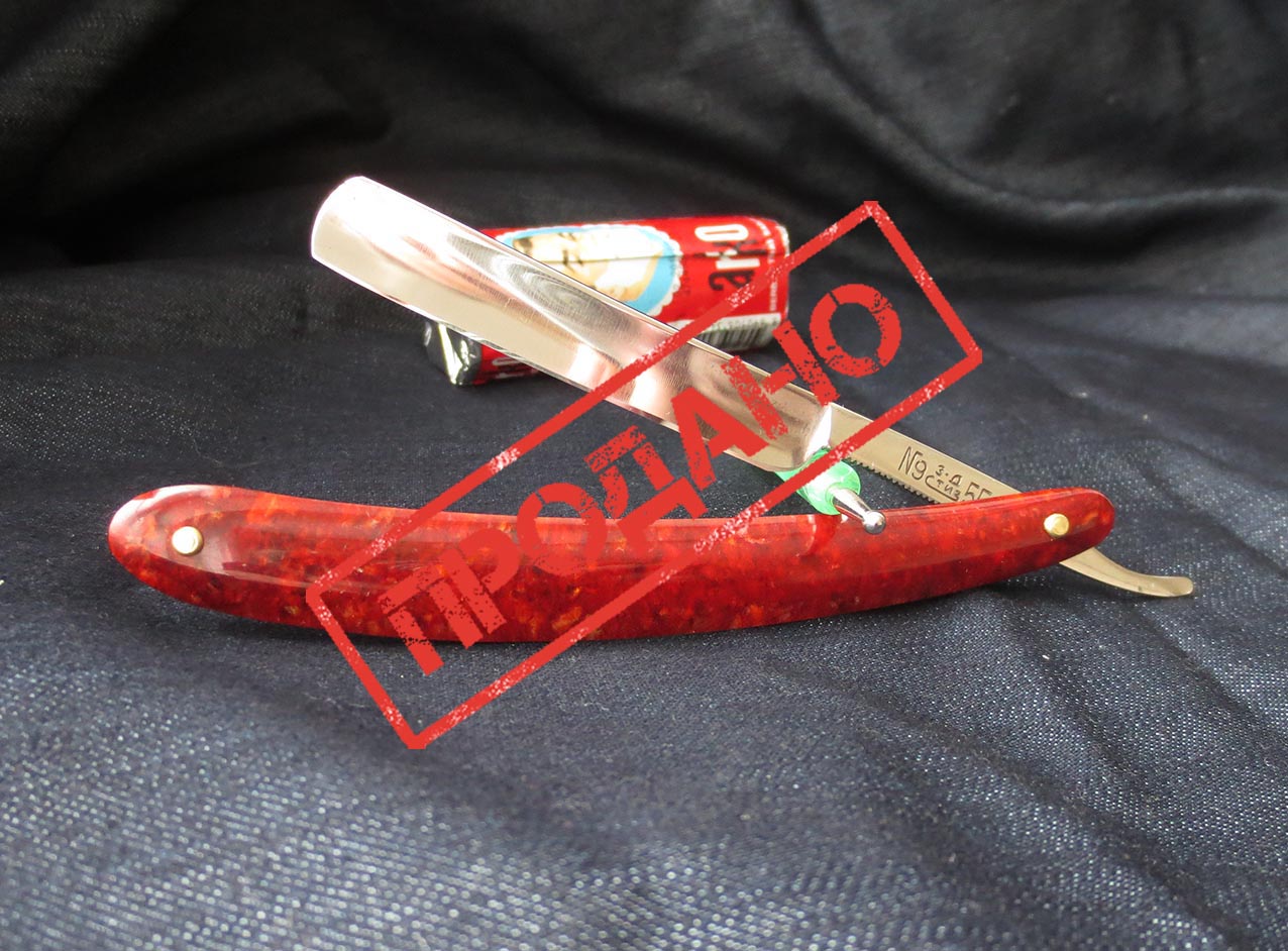 Ориентировочно - 50-60 годы, углеродистая сталь, ширина клинка - 6/8 дюйма, заклёпки - латунь. Вместо старой, хотя и годной оправы, была изготовлена новая, из американского киринита цвета "Desert Camo" от чего внешний вид бритвы только выиграл. Инструмент заточен на японских водных камнях, направлен, продезинфицирован и полностью готов к работе сразу после покупки, купил и брейся. Очень достойный вариант не только для новичка, но и для бывалого пользователя. Также всегда в продаже ремни для правки из натуральной полированной кожи растительного дубления и при покупке бритвы и ремня почтовые расходы по России за мой счёт. Начинающим подскажу и покажу, как пользоваться и ухаживать за инструментом. Цена - 8250 рублей.