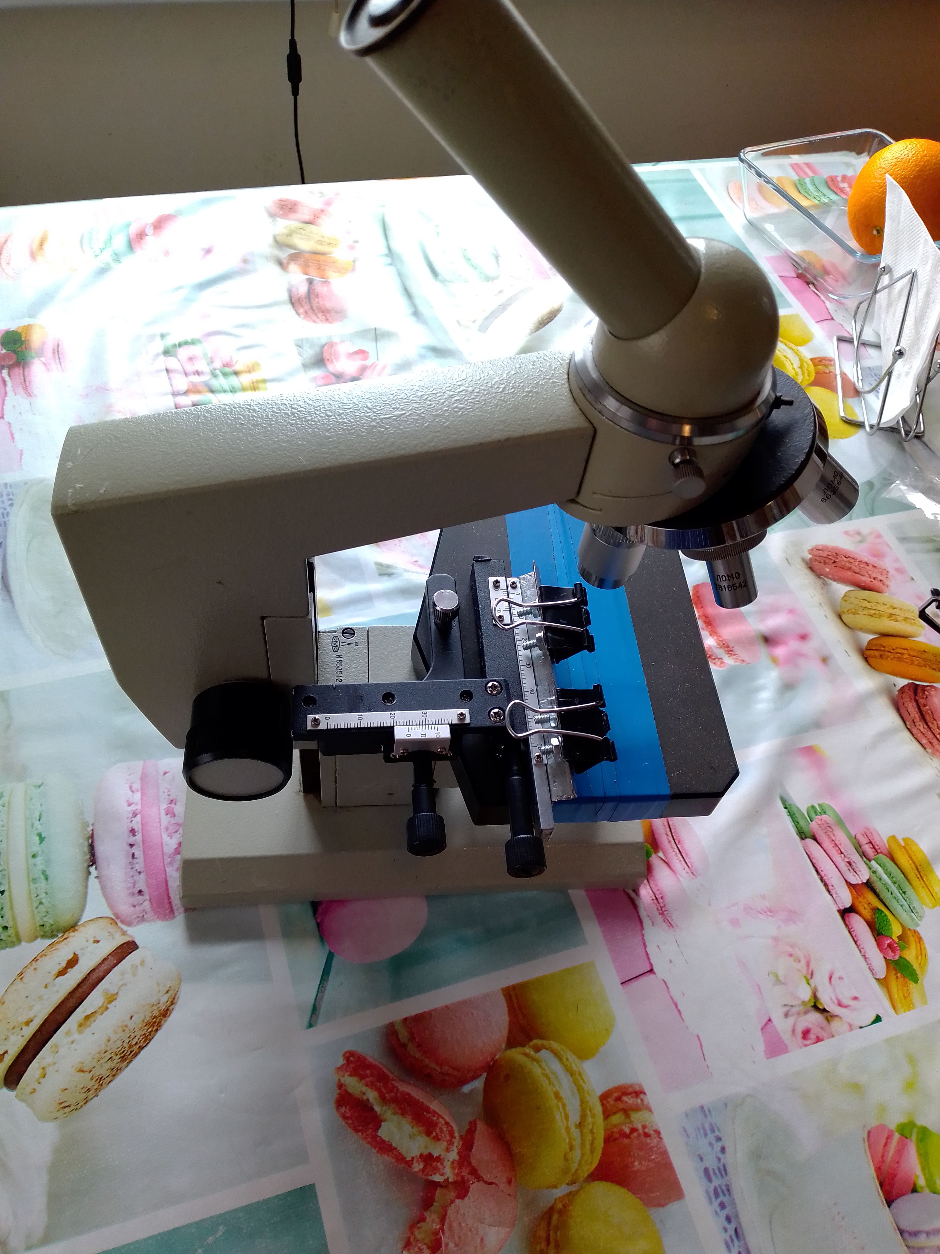 Поделюсь доработкой микроскопа - механической системой прокрутки, позволяющей комфортно рассматривать режущую кромку . В связи с дороговизной координатного столика нашего производства, на алиэкспресс был куплен координатный столик (поиск на Алиэксспрес по словам: Attachable Mechanical Stage X-Y). На котором были откручены держатели стекол. Вместо держателей прикрутил кронштейн из оцинковки с канцелярскими скрепами. Главное на кронштейне выгнуть правильно углы. В качестве информации окуляр использую х7. Объективы: в основном х8, в случае если нужно лучше присмотреться, то переключаюсь х10. Вполне хватает. У нас три времени года: грязь засохла, грязь намокла и грязь замерзла.