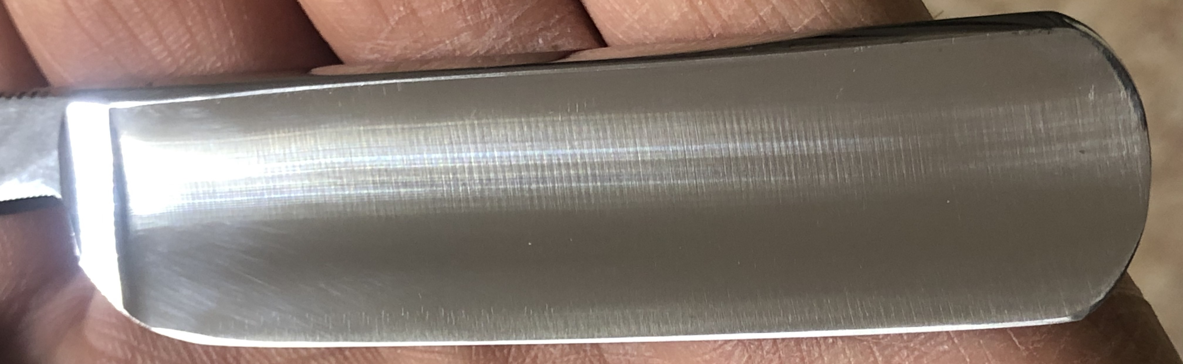 Идеальная геометрия полотна:кромочка равномерна по всей длине.Сталь чистая, без видимых дефектов.Ничего не болтается и не люфтит. Очень неплохой вариант для новичка, как удобный и совершенно недорогой инструмент.