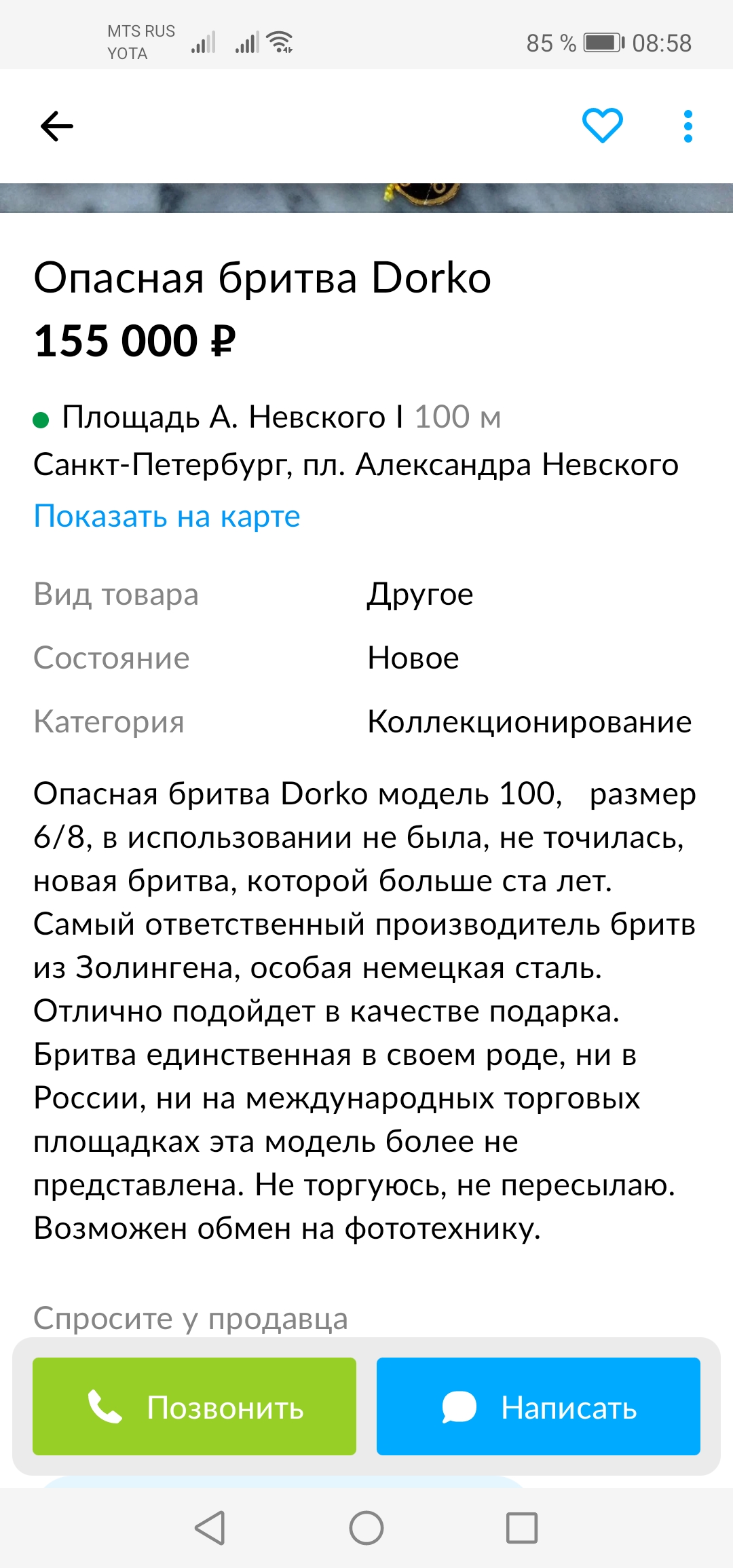 Аукционы: плагиат, развод и "великолепные" описанияРемонт опасных бритв, звонить с 11-00 до 23-00, +79267729357, (whats app, telegram, VK), спросить Олега.