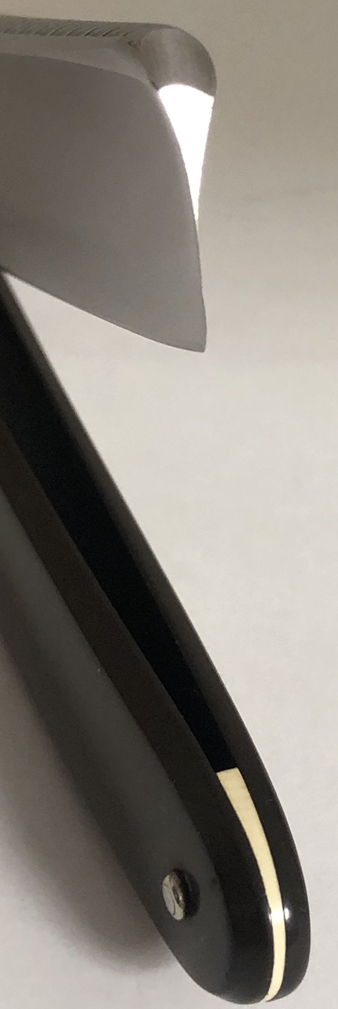 Бритва в идеальном состоянии,без следов пользования.С большой долей вероятности вообще не была ещё в деле.Не разбиралась.Немного освежил клинок от патины, на самых тонких абразивах и полирнул.Состояние новой бритвы.Идеальная геометрия:кромочка равномерна по всей длине.Сталь чистая, без дефектов.