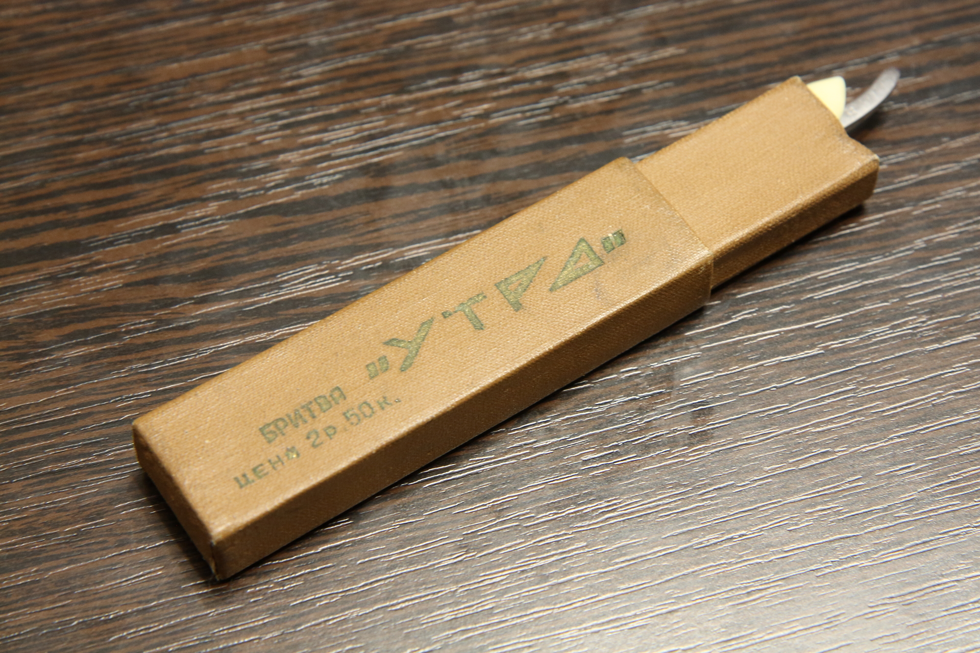 Опасная бритва Столичная, завод СТИЗ, 1960 год. Ширина полотна 16.7 мм, все родное, футляр без крышки от другой бритвы. Почистил вручную (остались некоторые следы времени) и подготовил к бритью. На лезвии было травление "Столичная с кремлевской стеной", но пришлось его удалить, т.к. оно было испорчено. Неплохая сталь и приятное дружеское бритье, сталь средней твердости, хорошо подойдет для начала. Цена - руб. К бритве рекомендую приобрести ремень для правки опасных бритв моего изготовления из итальянской кожи (подробнее на странице 4, объявления 56-58 и странице 9, объявления 127). Spoiler Show