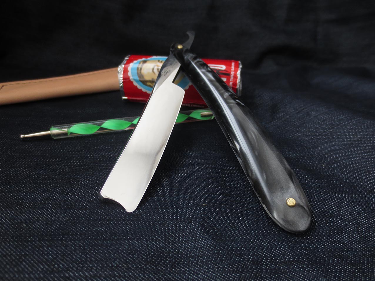 Год производства ориентировочно - 1920, г.Броктон, штат Массачусетс, США. Инструмент находится в отличном состоянии, хотя ему почти сотня лет. Клинок из углеродистой стали, ручка - целлулоид, имитация под слоновую кость. Полотна - 5/8 дюйма, самая универсальная ширина, как для обучения, так и для дальнейшего постоянного использования. Бритва заточена на японских водных камнях, направлена и полностью готова к борьбе с щетиной любой жесткости, тест на рез волоса при покупке без проблем. Сам оставил одну себе в коллекцию из-за крайне комфортного бритья. Рекомендую этот инструмент, как начинающим, так и бывалым брадобреям... При покупке ремня для правки и бритвы доставка по бескрайним просторам нашей родины будет для покупателя бесплатно. Цена американца - 6250 рублей.