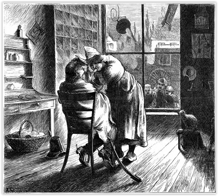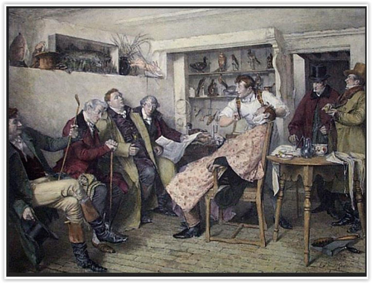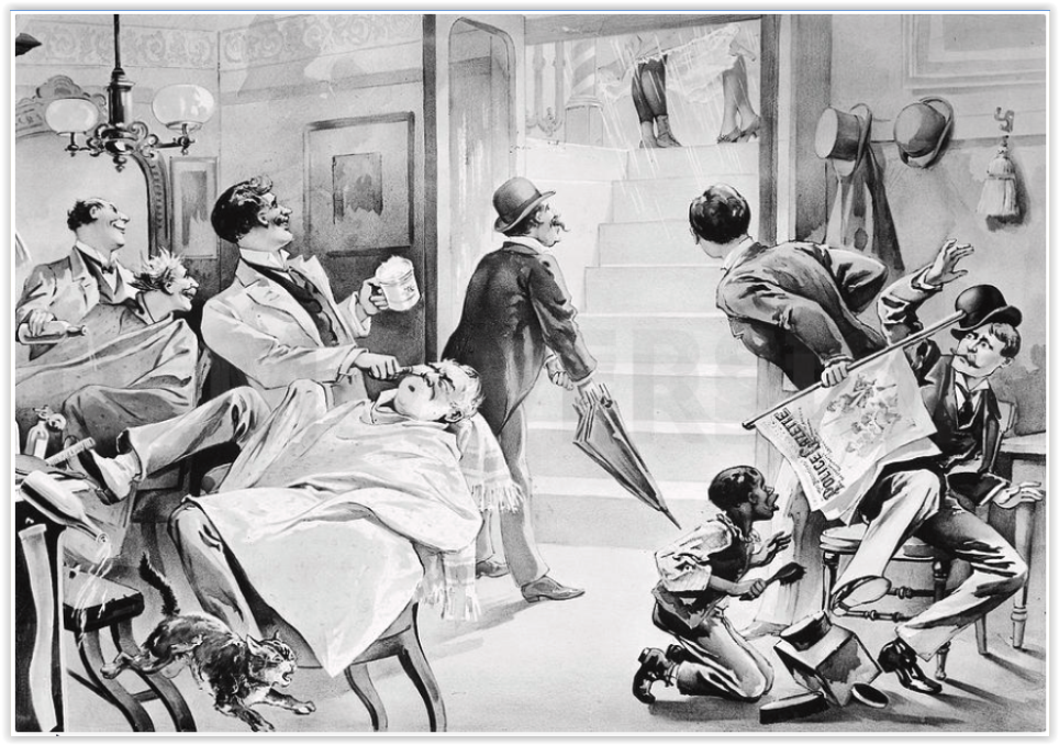 „Morning Gossip” „Утренние сплетни” Frederick Barnard (1846-1896) Фредерик Барнард был викторианским английским иллюстратором, карикатуристом и жанристом. „Barber Shop Ye Old Way” „Парикмахерская Старый путь” 1885 С 2013 г. с кайфом бреюсь опасной бритвой пять раз в неделю, в три прохода.