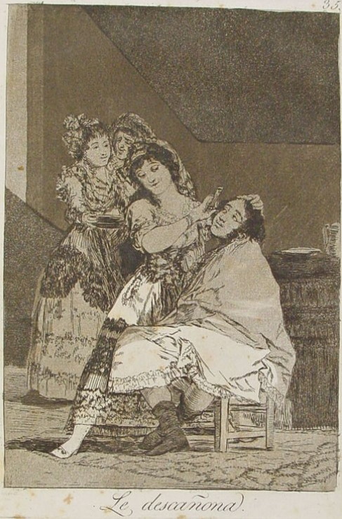 Каждый, наверное, слышал о знаменитом художнике Франсиско Гойя, Francisco Goya (1746-1828). Испанский художник и гравёр, один из первых и наиболее ярких мастеров изобразительного искусства эпохи романтизма. В этой гравюре особый смысл. Внизу написано „Le descañona” (Обманщица) Объяснение: - из рукописи музея Прадо: „Его бреют чисто и с него сдерут шкуру. Сам виноват, что вверяет себя такому брадобрею”. - из рукописи Национальной библиотеки: „Куртизанка бреет своего тупого любовника, и вырывает из него все до последнего мараведи (гроша)”. Значить, слово „брить” и в других странах имеет переносное значение. Гравюра „Le descañona” 1799 г., (анг. „She fleeces him”), (фр.”Elle le rase”), на русском языке гравюра называется „Она его гладко бреет”. Рисунок из английской газеты, Лондон 8 октября 1870 г. „Shaving the enemy at Montmirail” „Бритье врага в Монмирале” Французская парикмахерская бреет прусского солдата во время франко-прусской войны 1870-1871 годов. С 2013 г. с кайфом бреюсь опасной бритвой пять раз в неделю, в три прохода.
