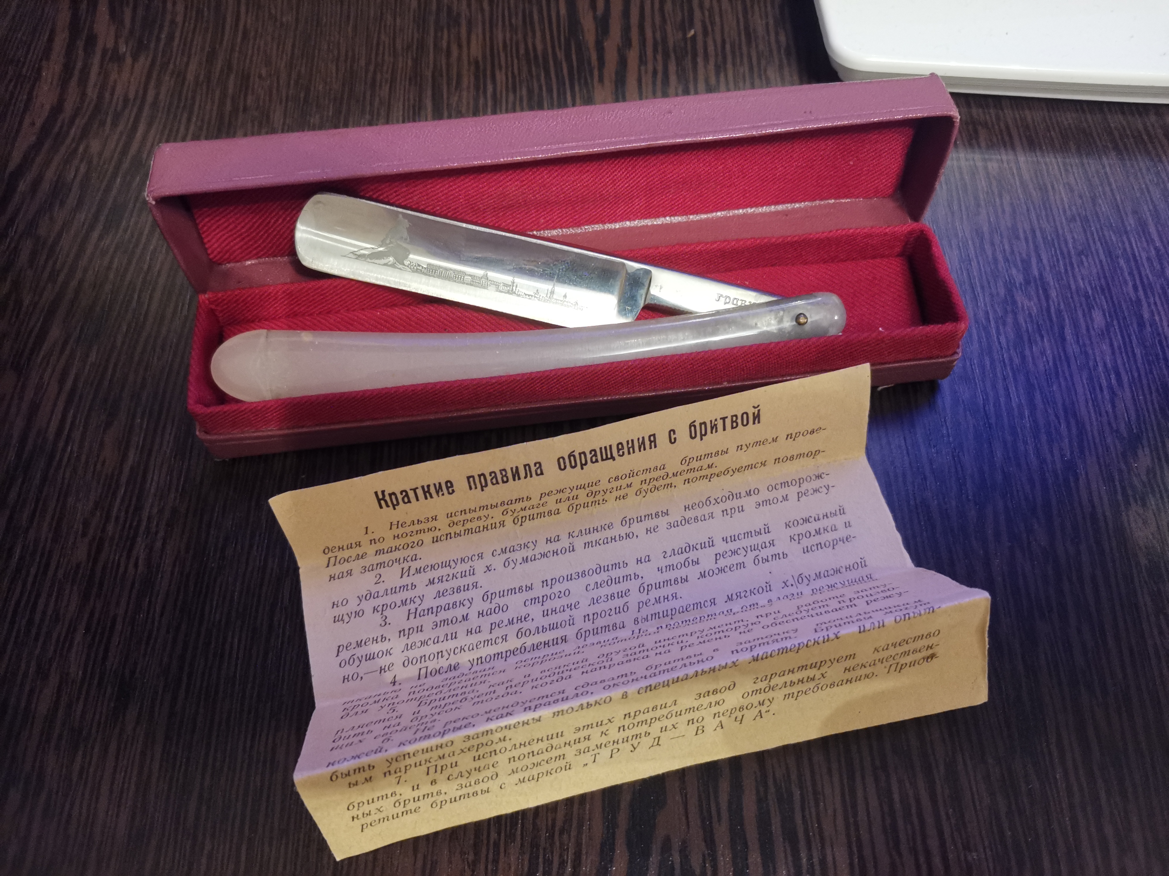 Дальнейшую историю завода "Труд" мы намеренно опускаем, так как производство опасных бритв после 1968 года было прекращено.