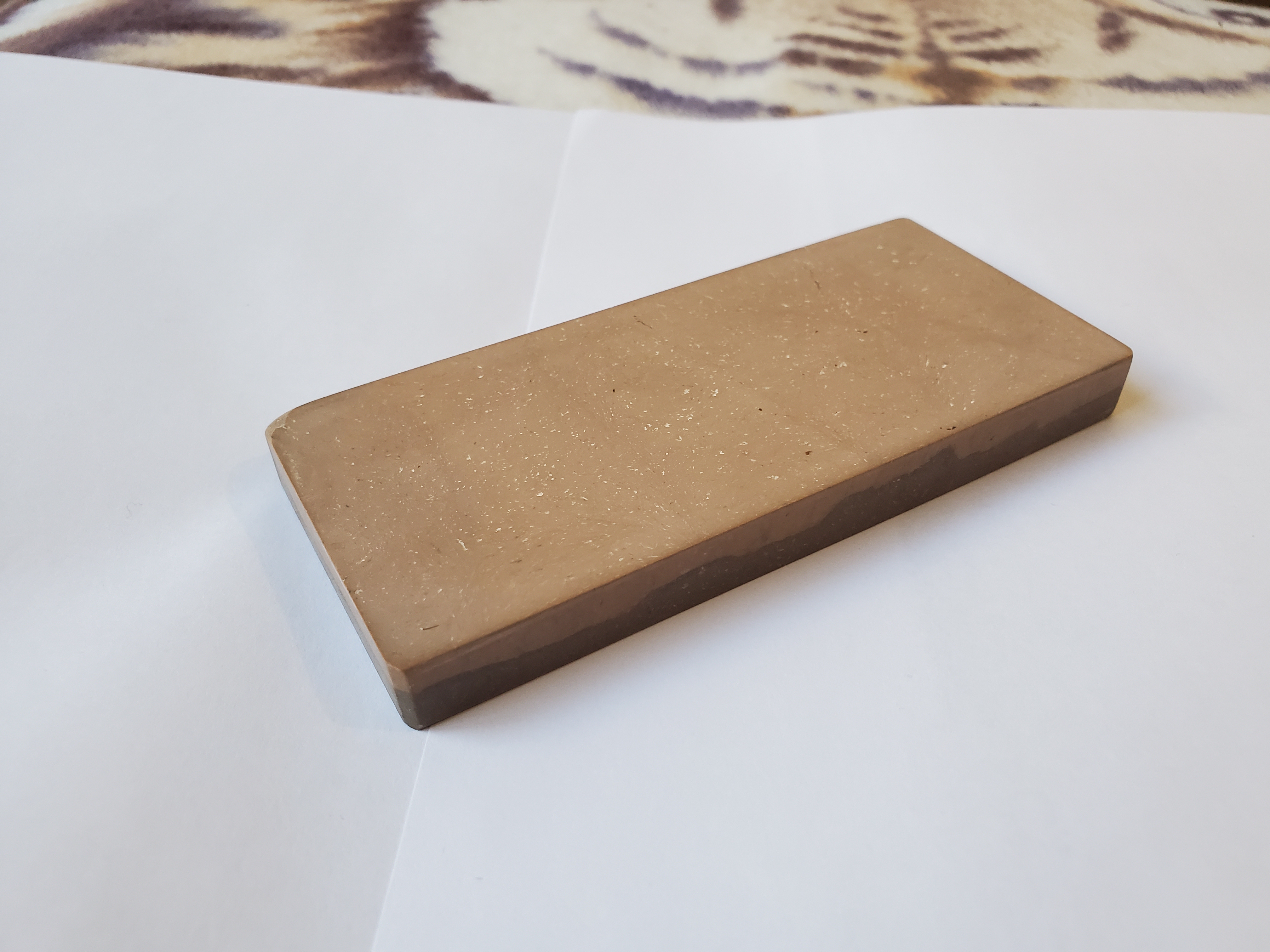 Вот такой 6 дюймов. Тоже не понятно кто, но после него -чистый ремень и можно бриться. Довольно мягкий. Суспензия кирпичного цвета, а сам нечто среднее между кирпичным и шоколадным. На ощупь очень приятный  .