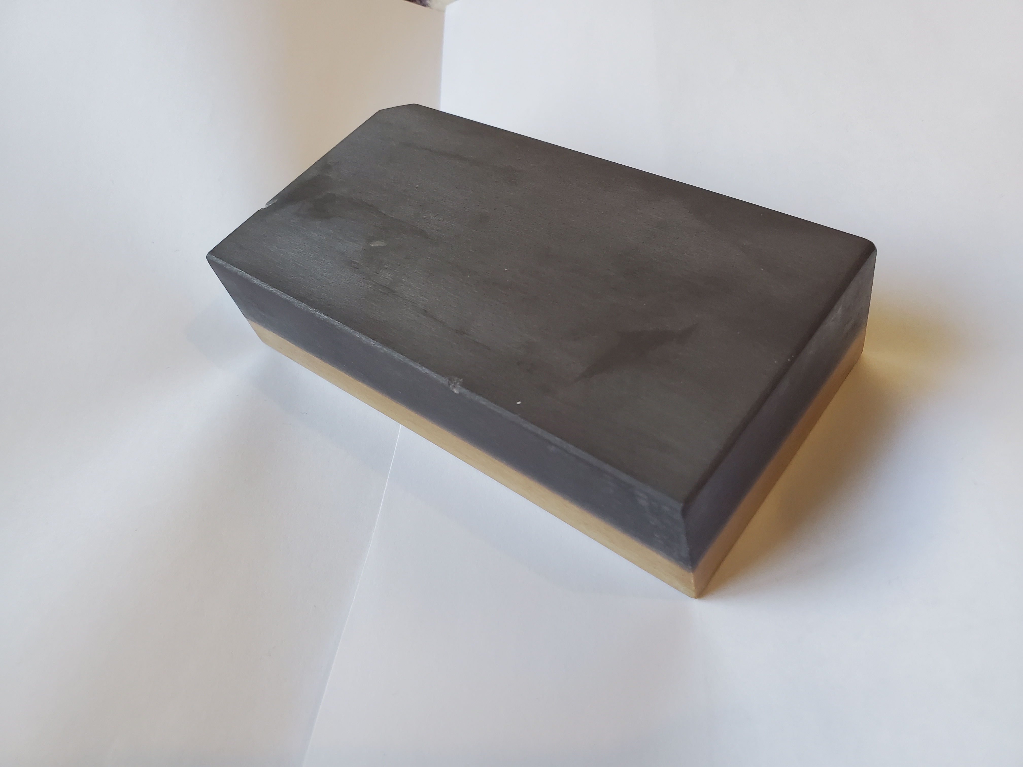 Не знаю кто, но был в зеленом тканевом мешочке с остатками чернильной надписи на боку. Прочитать было не возможно. Фрикционит? Очень твердый, но поверхность вся в мелких кавернах, а ровнять- снять много тела... Использую для наведения суспензии. Или на кухонниках- жрет металл очень хорошо.