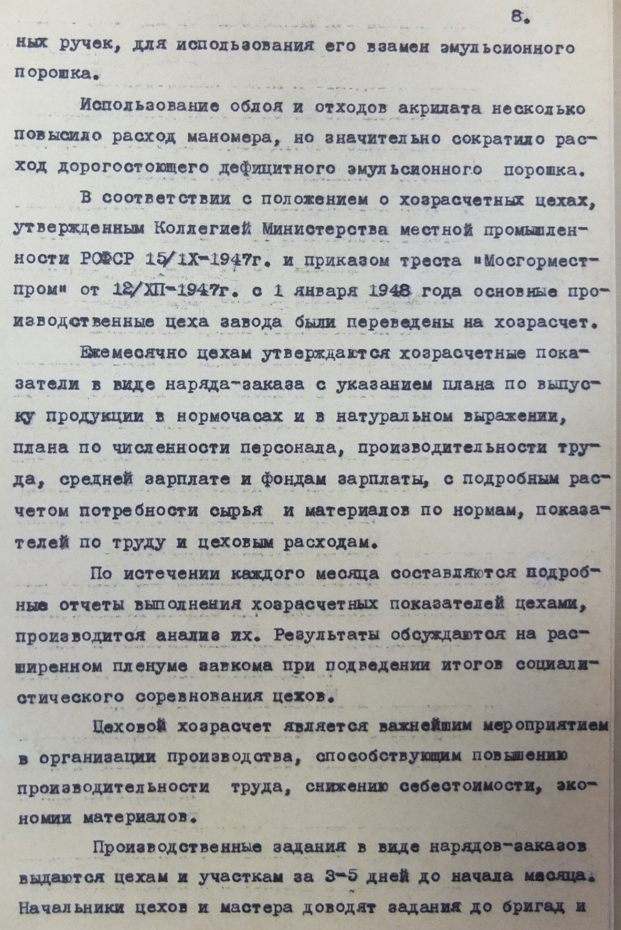 В перспективном плане развития производства на предприятиях треста "Мосгорместпром" от 23/IV-49г сказано: