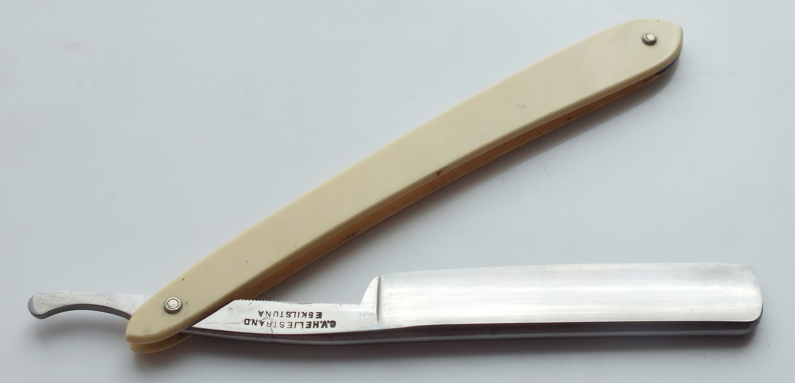 5/8', 1/2 холлоу. Углеродистая сталь, целюллоид "под слона" Практически не пользованная. Кромочка 0,3 мм., равномерная. Выглядит вполне бодро. Разбирать не стал. Слегка протер Флитцем. Следы времени остались, на фото выглядят преувеличено. Бритва заточена и готова к бритью. Продано на другом ресурсе. Spoiler Show