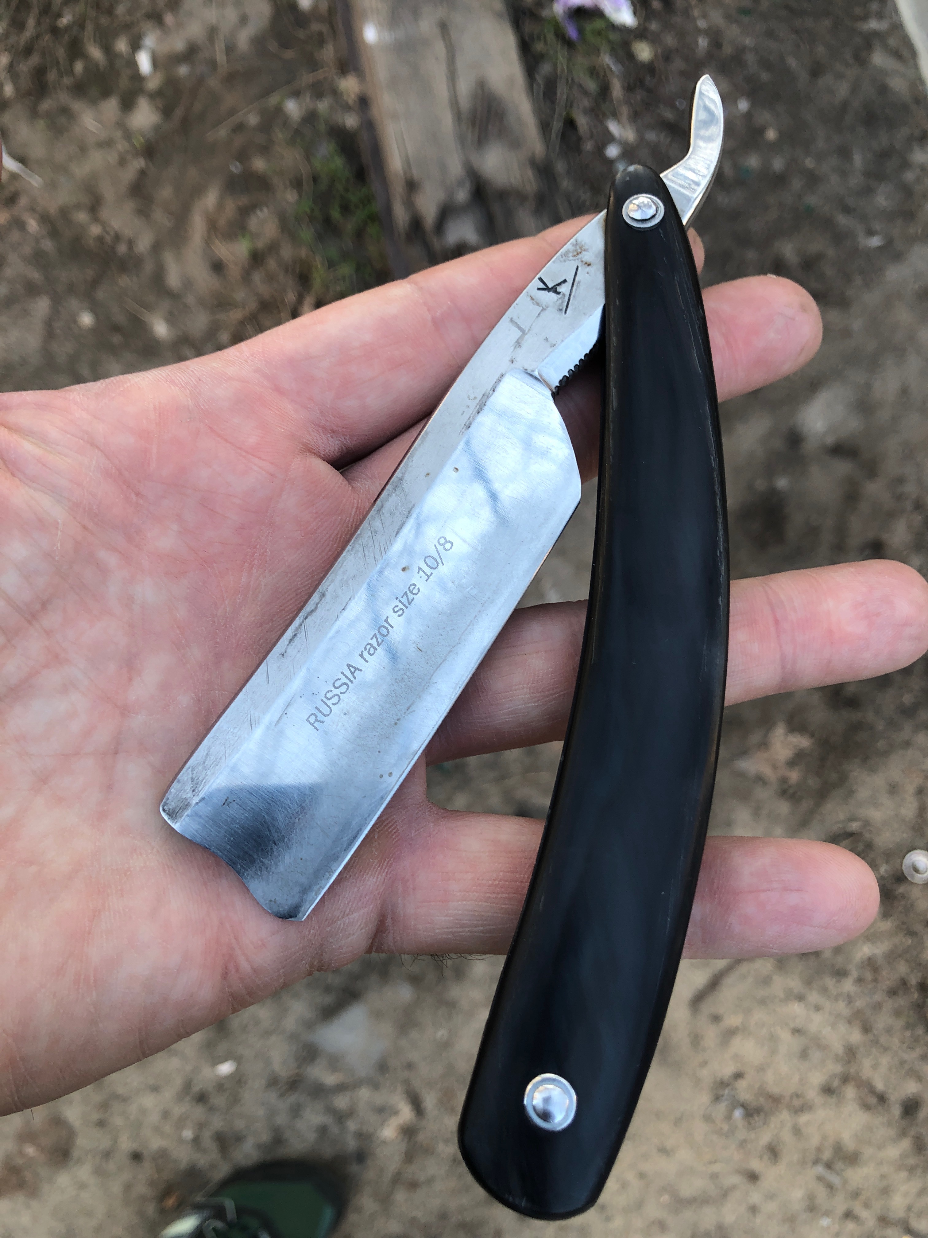 Короче,отправил я бритву другому нашему форумчанин,который пришёл к примерно к таким же выводам.И бритовка поехала обратно к своему счастливому покупателю,так и не «целованной».Но...Будет очень неплохой инструмент в качестве нарезания колбаски на отдыхе в каком нибудь лесу,не более.