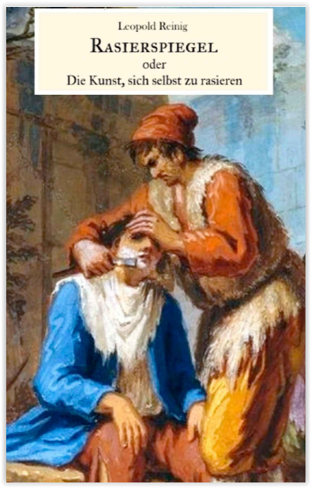 („Rasirspiegel oder die Kunst sich selbst zu rasiren , nebst den nothwendigen Belehrungen über Rasirmesser, Englische Mineralpaste, Streichapparate, Seifen und alles zur Verschönerung des männlichen Antlitzes Erforderliche. Faßlich dargestellt von Herrn Professor Legrand in Paris.”, Weimar 1846) Перевел с французского языка: Леопольд Рейниг (Leopold Reinig), издательство, типография и литография Б. Фр. Фойгта (B. Fr. Voigt) Вот как выглядит обложка современного издания этой книги. Ее можно купить на amazon.de: С 2013 г. с кайфом бреюсь опасной бритвой пять раз в неделю, в три прохода.