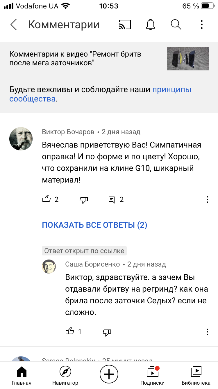 От это молодцы! Прям в прыжке полуботинки переобули  я не фанат Седых, но вот по отношению к нему, как то подленько поступили. Клинки выточил, отправил, клиент побрился и поблагодарил чо коменты то затирать? Короче понял, что вирус "переточильщиков" после всех точильщиков заразен  а фразой, что формировать кромку надо с 6000 гри(Д) он себя и похоронил. Короче мы все оказыватся чудаки на букву М, что начинаем с тысячника, а кто то и с 800 и даже 400 , если "клиент" в каматозе. я последние два года, такие клинки только на алмазных бланках кромку формирую, больше хрен чем сформируешь быстро. Зато 10 минут и кромка готова, потом 3-6-12 и можно на стропу.