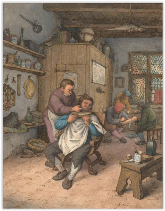 „A barber shaving a man” „Цирюльник бреет мужчину” 17 век.