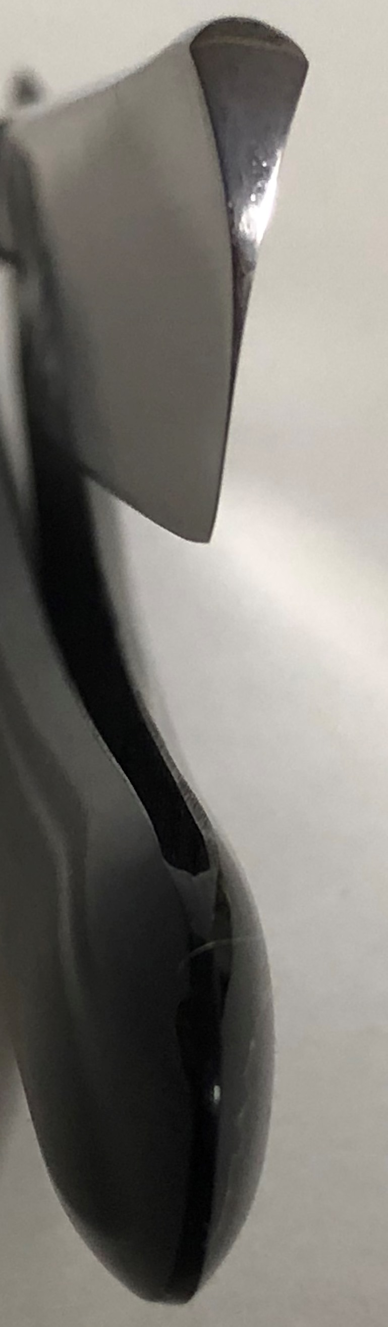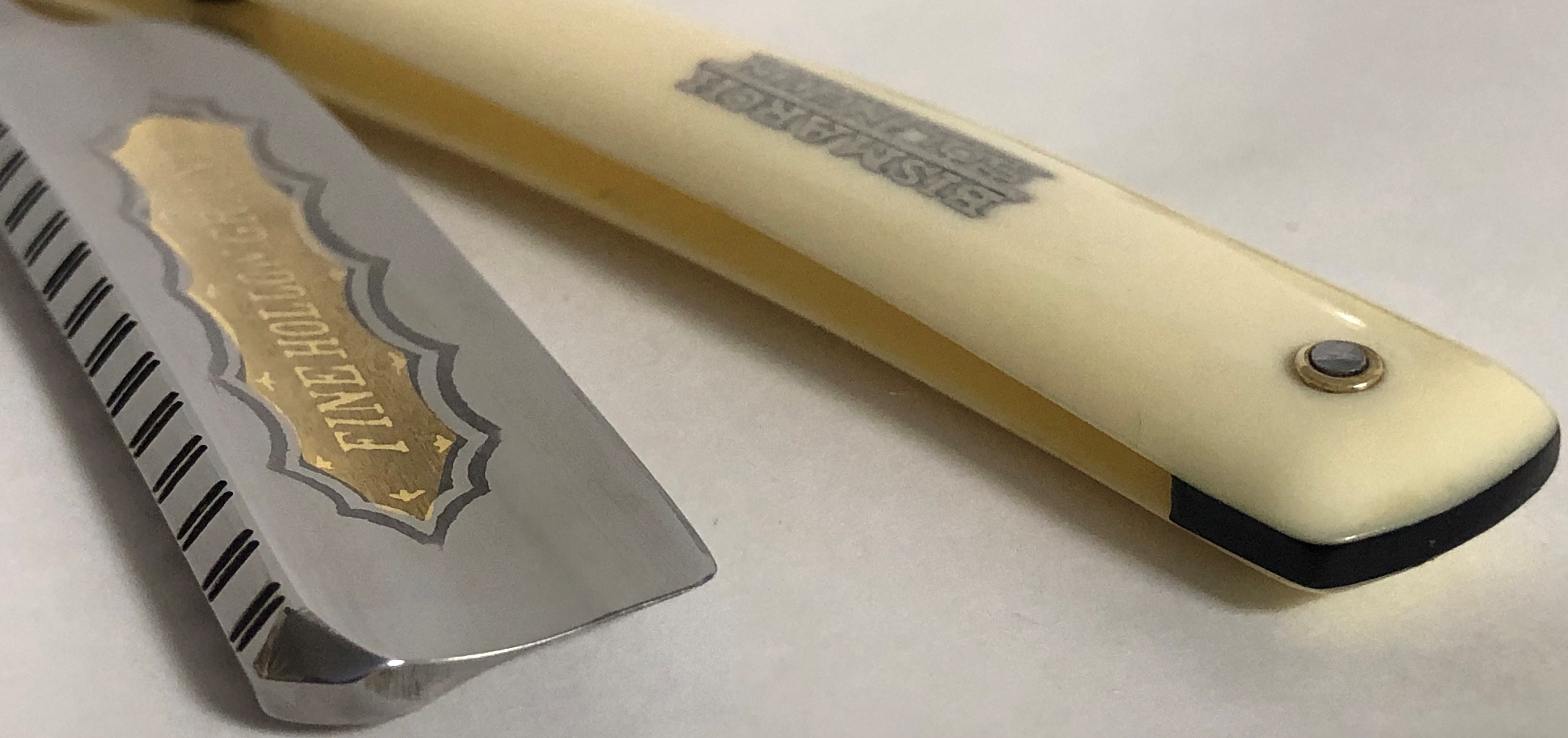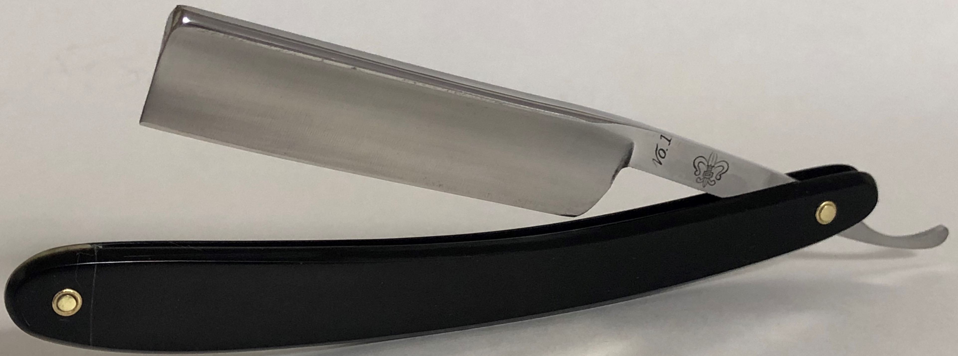 Достаточно не часто встречающаяся форма лезвия, с экстра полной вогнутостью.следов пользования не заметил.Разобрал, немного освежил металл и снова собрал.Идеальная геометрия полотна.Шведская сталь на клинке, как одна из самых удачных.Металл чистый от разного рода видимых дефектов.Отличная парикмахерская бритва, для профессионального использования, способная выдавать очень качественное и чистое бритьё.