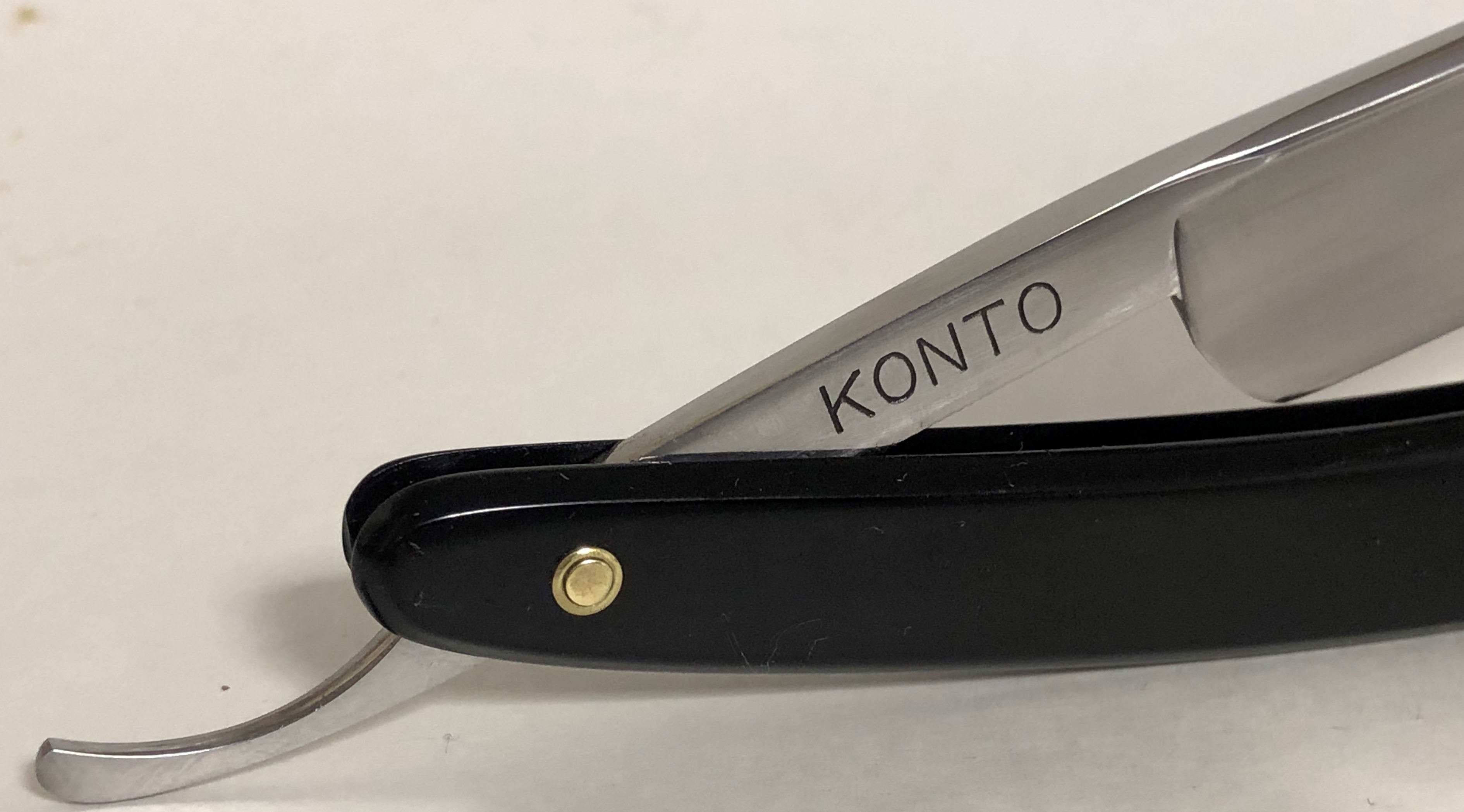 Бритва с немного неестественной формой лезвия именно для японцев."Горбатый"обушок , вкупе с тонким эрлем и средними размерами клинка смотрится очень даже неплохо.Бритву разобрал, почистил полотно и снова обрал, предварительно проклеив трещинку на ручке у нижнего пина.Сталь и кромка чистые от разного рода видимых дефектов.Идеальная геометрия клинка. Кромочка равномерна по всей длине.Удобная, вёрткая, с отличной сталью бюджетная бритва. Заточена и готова к бритью.