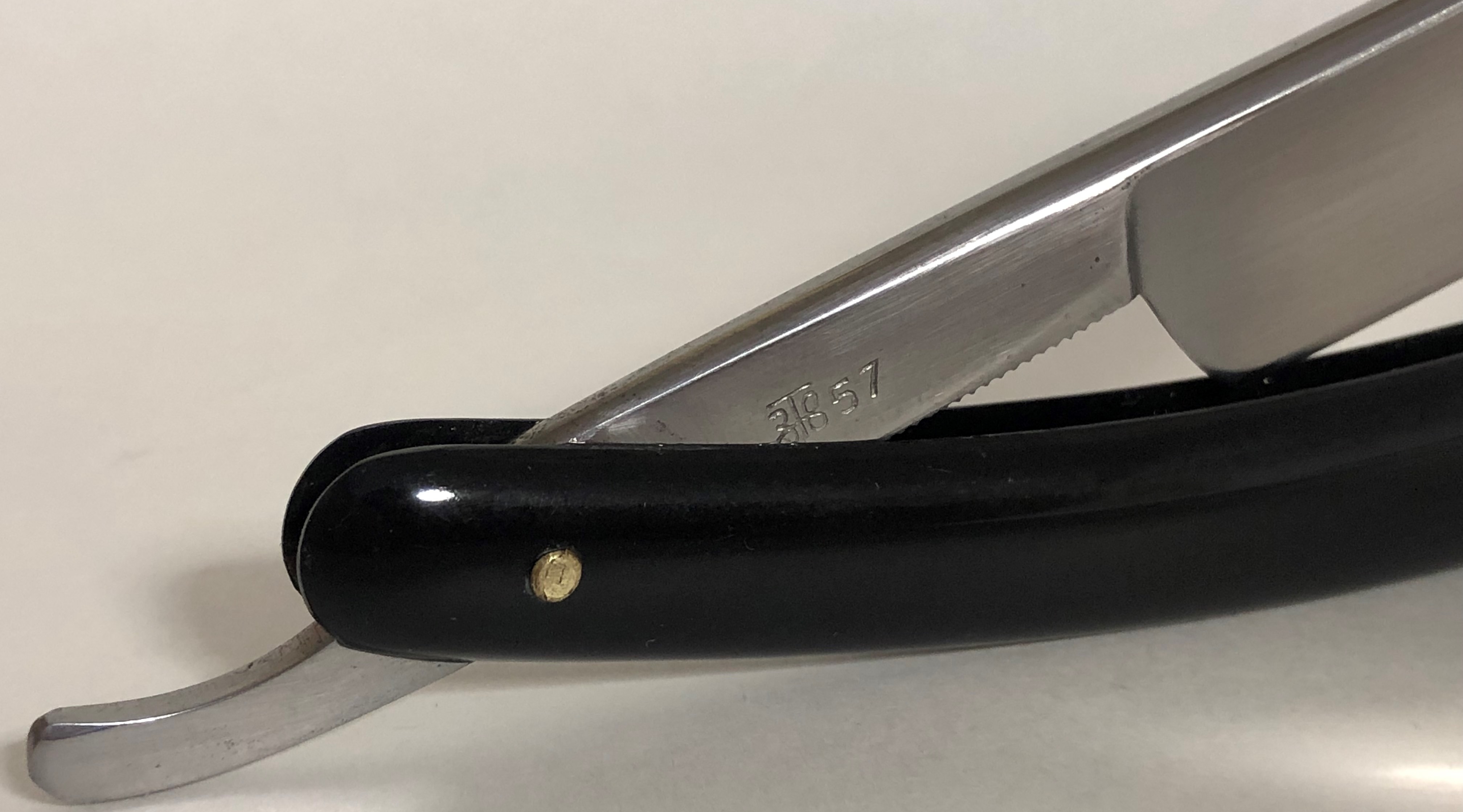 Клинок в пользовании не был.Единственно что,прошёлся тонким абразивом,дабы убрать немного окисления металла от времени.Попробовал воссоздать "родной"поперечный гринд.Идеальная геометрия полотна:кромочка равномерна по всей длине. Вместо сломанной оригинальной оправы поставил ручку от немецкого донора. Хорошая,добротная и ровная оправа.Небольшие трещинки намертво проклеены и никоим образом не повлияют на дальнейшую эксплуатацию.Немецкие двух-цветные пины, с добавлением внутренних шайб.Очень неплохой и недорогой рабочий инструмент, особенно для новичка.Заточена и готова к бритью.