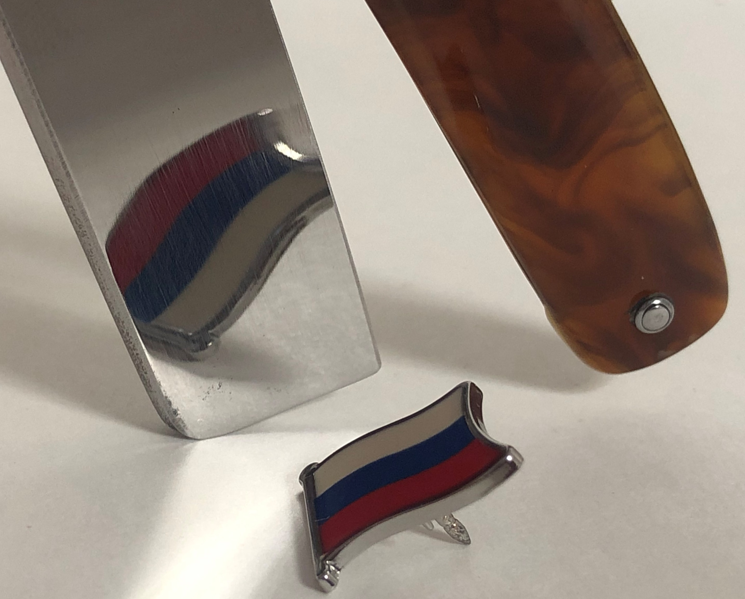 Бритва в идеальном состоянии. Остатки масла удалил и переточил бритву. Не разбиралась и не ремонтировалась. Заводская шлифовка и полировка.Кромочка равномерна по всей длине.Следы от электро-химической заточки также присутствуют.Изображение на полотне четкое, без потертостей.Сталь и кромка чистые, без видимых дефектов.