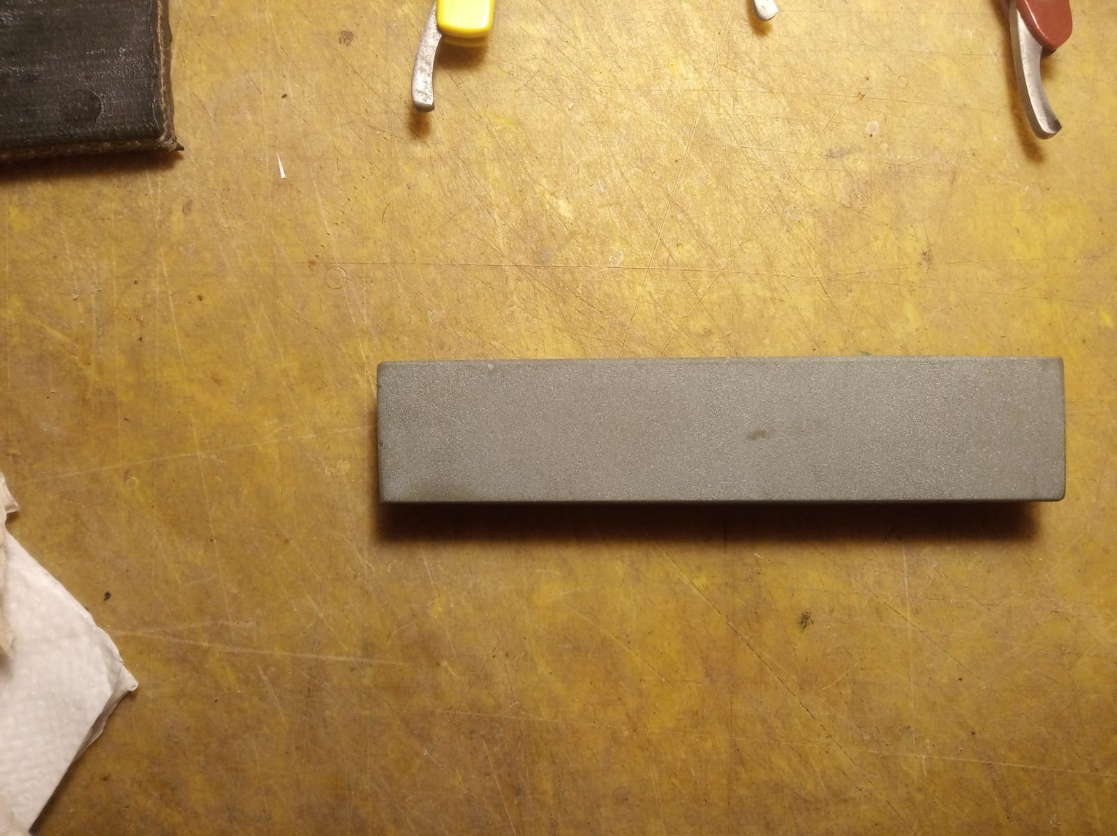 Заточка на камняхСегодня на заводе, кладовщица шарилась на складе. Нашла байкалитик 125х25. Говорит, что последний. Правда, крупные я ещё несколько лет назад забрал. Не притёртый. Кусочек СССР.