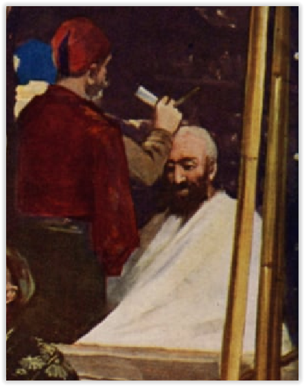 „The barber of Bou-Saada, Algeria” 1929 г. „Цирюльник из Бу-Саада, Алжир”, Взглянем поближе: С 2013 г. с кайфом бреюсь опасной бритвой пять раз в неделю, в три прохода.