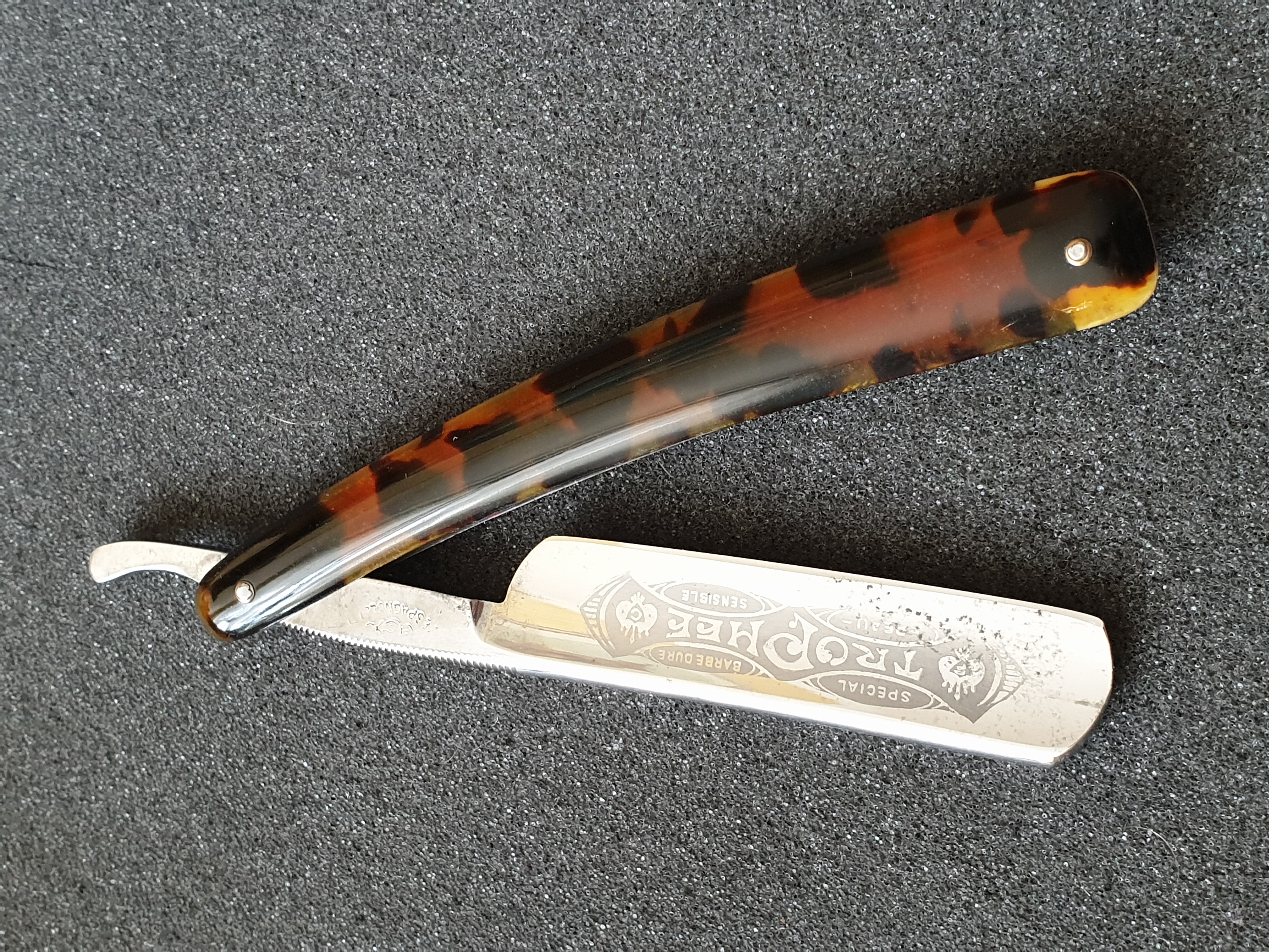 Продаётся от S&T105. Франция, Тьер, марка зарегистрирована в 1952 году - L'Espagnolette Trophée от фабриканта бритв François Chaussiere.