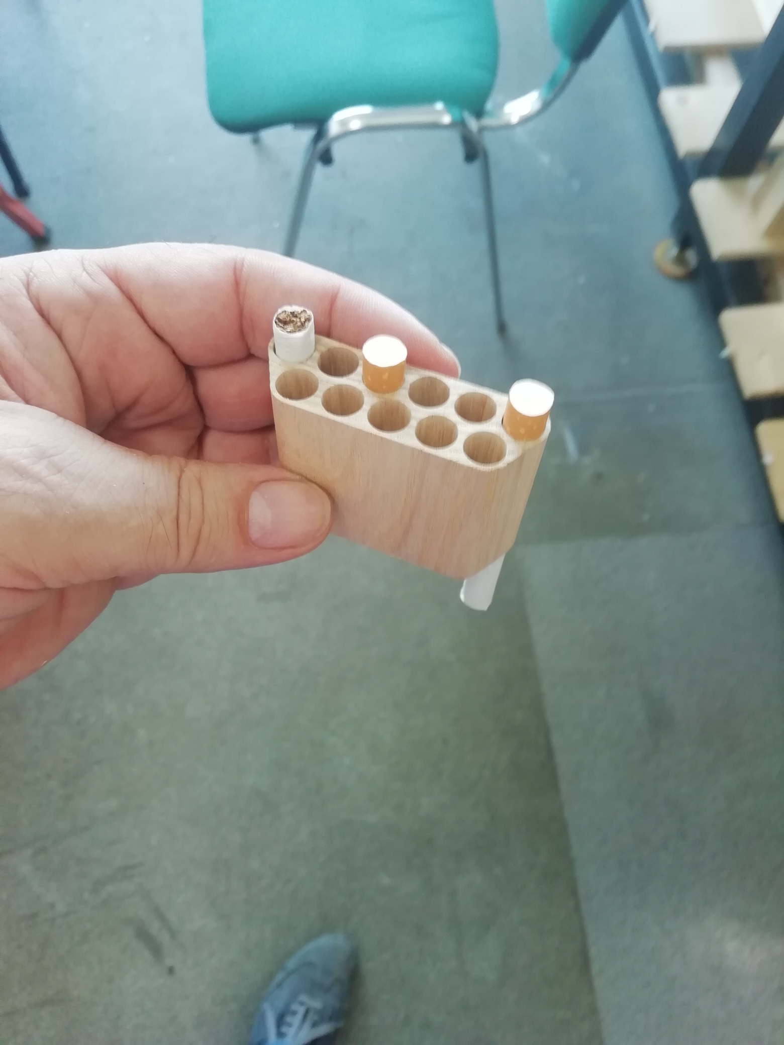 Это внутренний вкладыш к потенциальному портсигару такая вот "катюша". Ясень.Толщ стенки внешней - 1мм. Внутренних - 1,8 или 2,0мм Габарит 20,0х61х42ммR5.5мм И, конечно, обычное сверло такую обработку не даст. В чо одевать вкладыш то, есть мысли - в бубингу, дуб, кр дерево, тож ясень? Шёл от выданной заказчиком его сигаретины - d8мм - гильза, d8.5х24мм - фильтр, длина = 83мм. PS я внимательно посмотрел на варианты, предложенные тут. Все варианты. И Штоль, и испанов - Хемар, и Данхил, и самопалы разные. Пока решил остаться на своём, а дальше посмотрим. PPS наверное просто обтяну этот вкладыш деревом (корпус + крышка), добавив на стенки там +1 мм толщины внешнего корпуса... и вклею вкладыш в корпус - плотнее будет стенка. И без магнитиков.