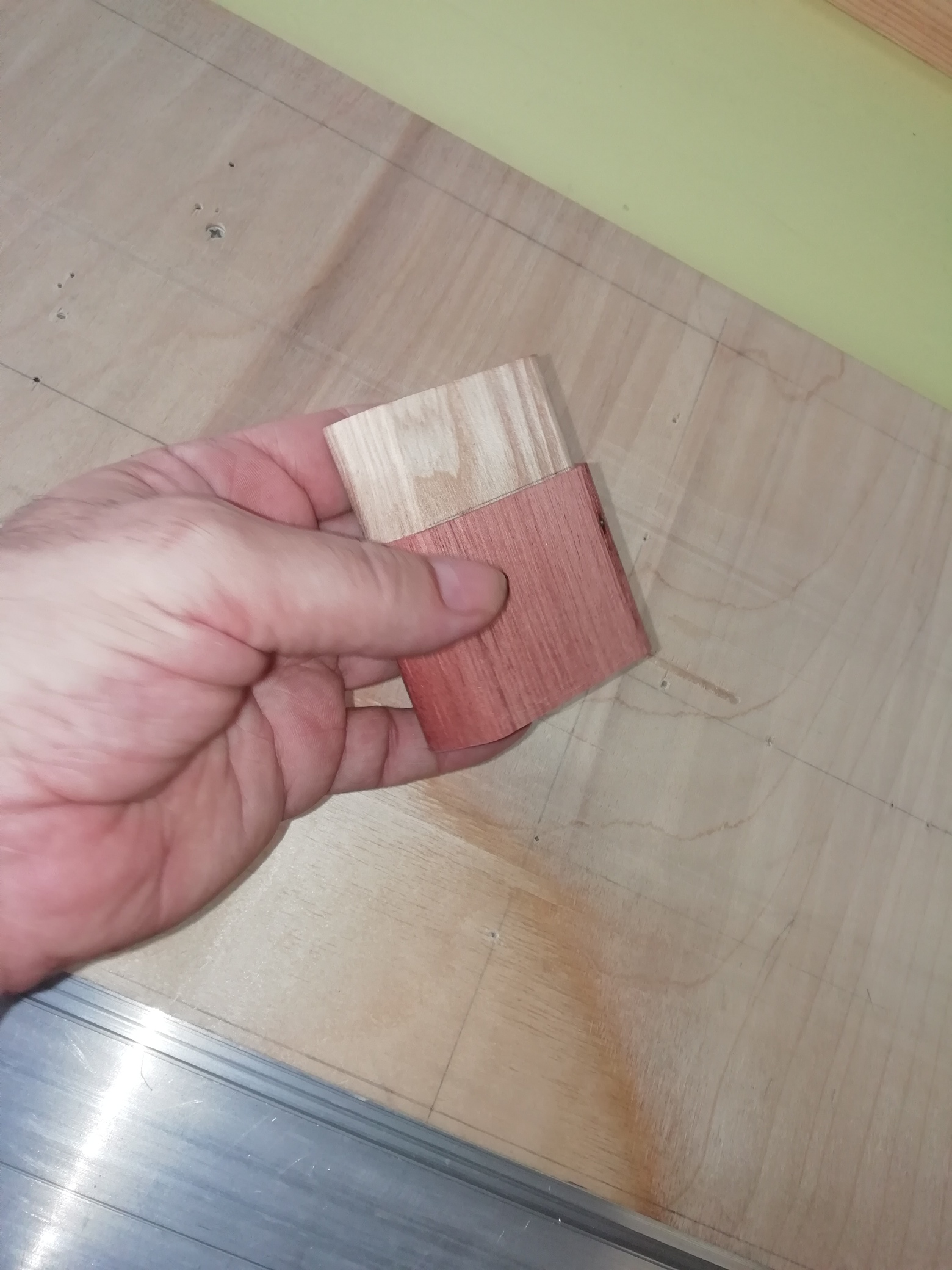 При впихивании (несколько проб), сиг в трубы - всё норм, заодно скрученной в трубочку шкуркой пошоркал ту ступеньку. Тут я думаю - норм. Там у заказчика проблема на работе с разделением сигарет с шефом (курят одно и тоже), кажется, и таким образом , наверное, он хочет забить/обозначить свою или его долю Ну я тут как бэ только исполнитель прихоти. И ну 20, а с "кожурой" будет 22, ить, и ничего - норм - только хочет теперь без магнитиков, как бы +1мм вокруг - на корпус и крышку... заоваленным ромбиком типа пусть будет - "удобнее чтоб держать". Ну вот ясень попробовал на "глубокое бурение" - 1 мм стенки - ясень выдержал без разрушения и отклонений. А вот бубинга... не работал, говорят пластичная, посмотрим, наверное. Обещали подкинуть на след неделе бубину, посмотрим. Если что, дорежу тем же ясенем - хороший для тонкой обработки материал. PS а сколько толщина/ширина/длина обычной пачки?
