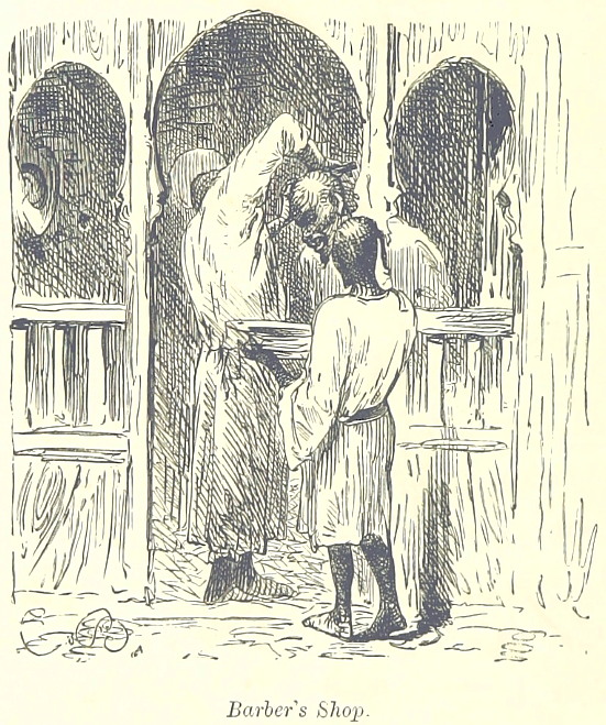Вот иллюстрации из этой книги. Художник неизвестный. Barber's Shop in Fez” „Цирюльня в городе Фес” „Barber's Shop” „Цирюльня” С 2013 г. с кайфом бреюсь опасной бритвой пять раз в неделю, в три прохода.