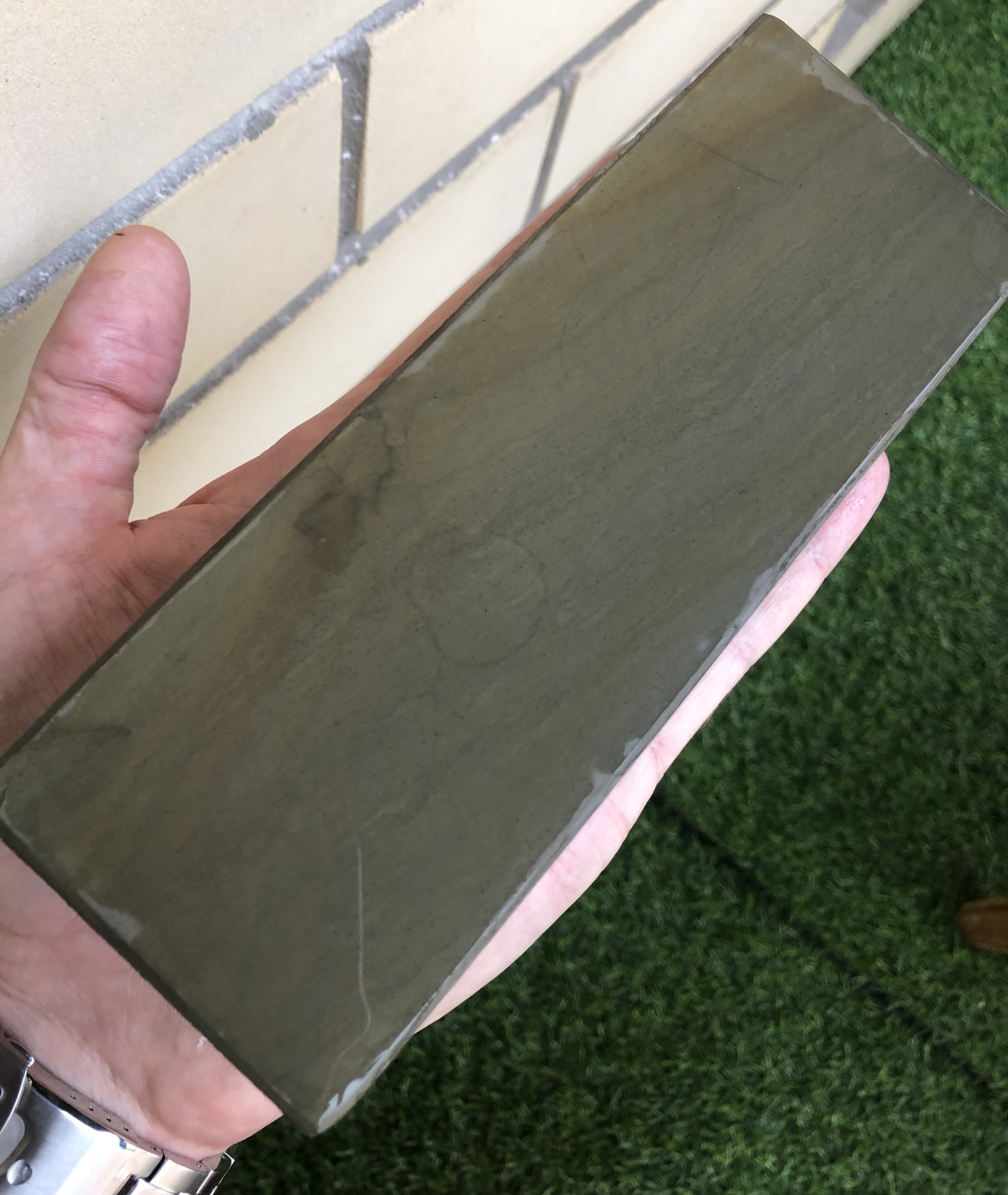 На мой взгляд, шикарный образец для финишной доводки опасной бритвы, а также для супер финиша и другого РИ.Камень удобен как для работы на столе, так и держа в руке.