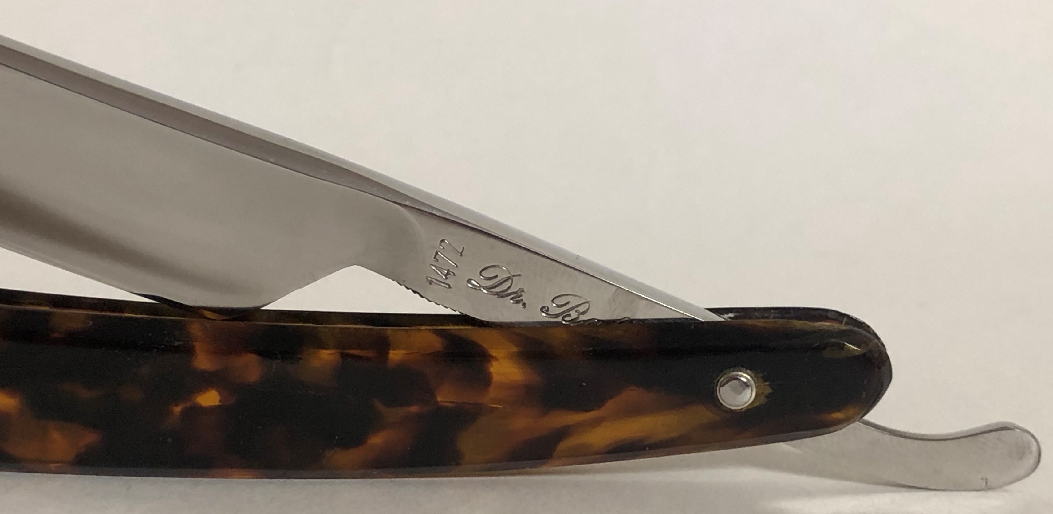 Бритва в очень хорошем и малопользованном состоянии.Красивая , с интересной формой лезвия и удобная бритва.Сталь чистая от разного рода видимых дефектов. Кромочка ровная по всей длине.Эффектная пластиковая оправа "под черепаху".Бритва была заточена и лично протестирована.Бритьё очень приятное, мягкое и чистое.Бритва для тех, кто не хочет лишний раз заморачиваться за уходом и обслуживанием.Не пропустите красивую и практичную бритву.