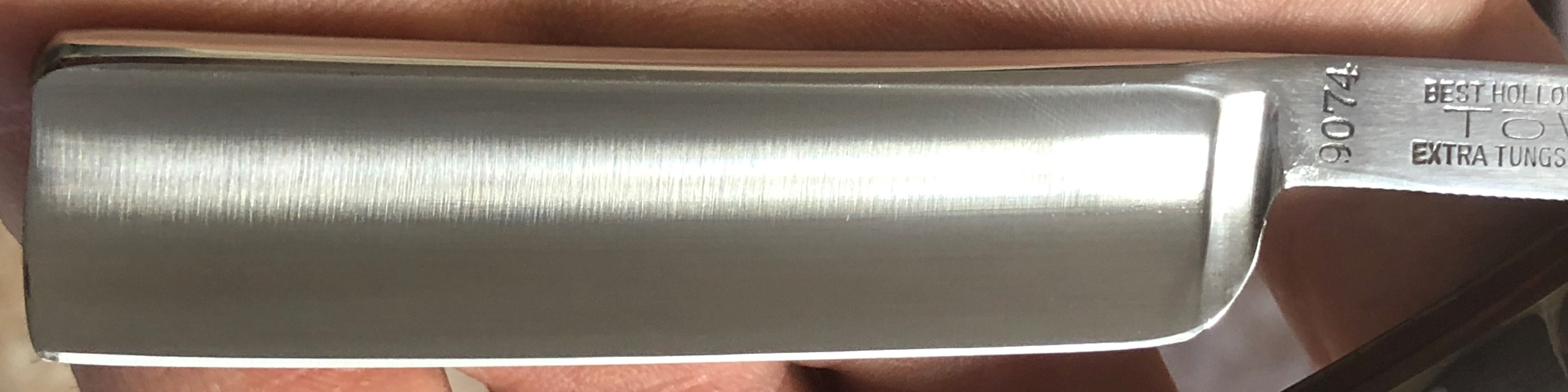 Не выдержал и переточил одну бритву для себя лично, на протестировать. Давненько у меня не было такой бритвы.После заточки и тонкой доводки бритва стала проходить тест на рез волоса, а после правки на ремне волосок рассекался при малейшем прикосновении. Бритье мягкое, комфортное и чистое,с небольшим "металлическим" оттенком.Что характерно, после бритья бритва также проходила тест на рез волоса(без правки на ремне), что говорит о качественной стали и достаточной доводке на камнях, без применения паст.