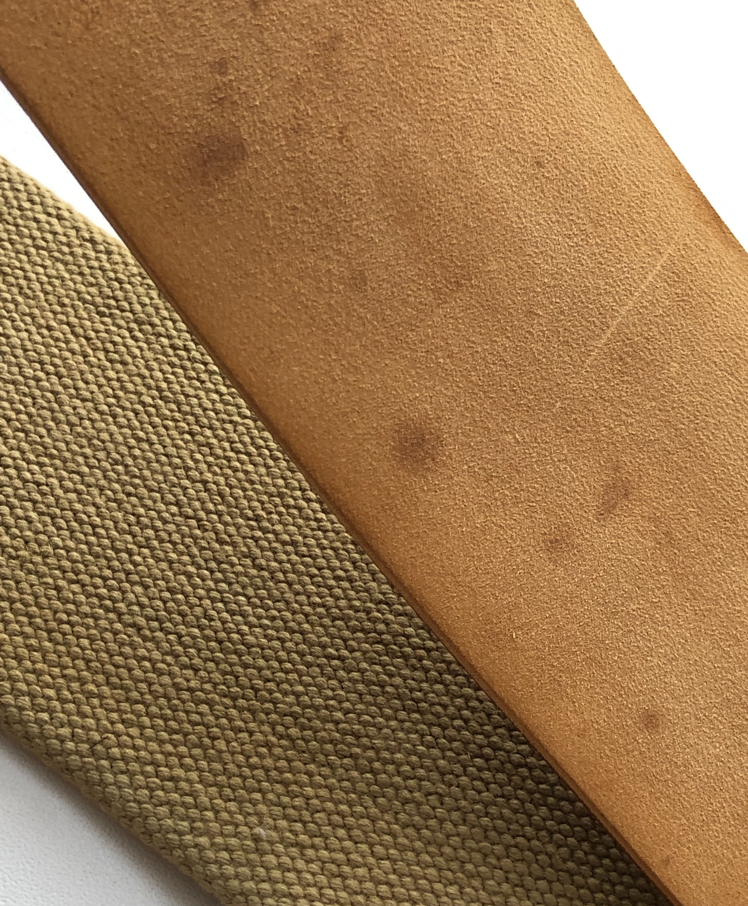 Ремень в непользованном состоянии.Кожа кордован не имеет порезов,царапин, шрамов, прожилок, трещин и других дефектов. Кожа мягкая, эластичная и светло-коричневая что говорит о хорошей сохранности за столько лет.Ремень из старых запасов. Вторая стропа-льняной холст. Мягкий и не требующий никаких подготовительных работ.